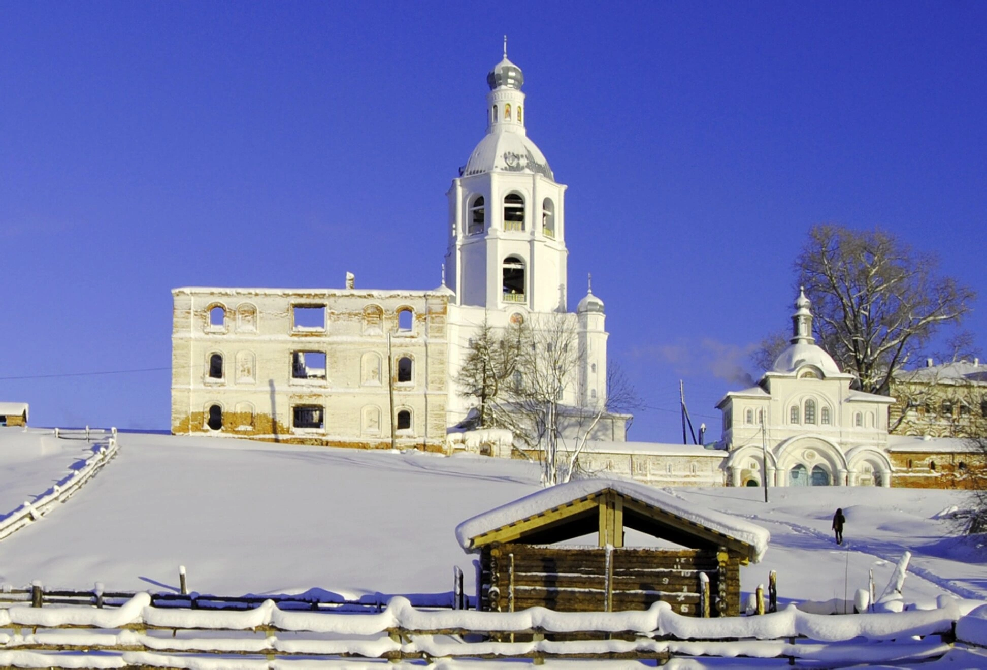 История этой святой обители насчитывает более шести столетий, переживая периоды расцвета и запустения. Возрождённый во второй половине XIX века, монастырь стал крупным миссионерским и духовным центром всего Северного края. Ныне он является объектом культурного наследия и продолжает свою духовную жизнь, привлекая паломников, ищущих молитвенного уединения и поклонения святыням. Зимний пейзаж подчёркивает аскетичную красоту монашеской жизни, напоминая о вечных ценностях, неподвластных мирской суете.