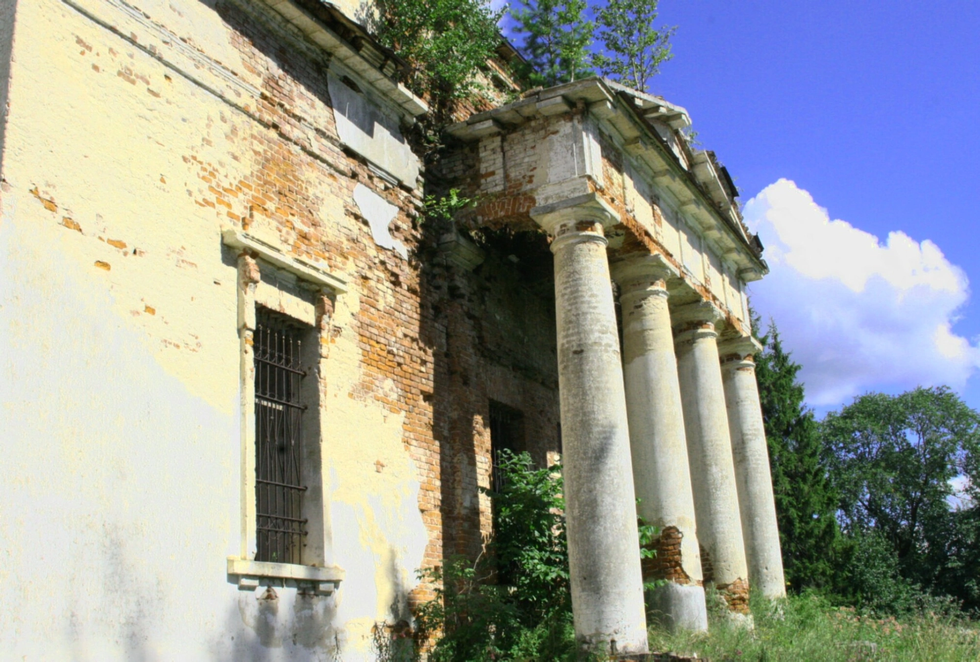 На представленной фотографии запечатлён Свято-Троицкий храм, расположенный в селе Микшино Торжокского района Тверской области. Этот православный храм, освящённый во имя Святой Живоначальной Троицы, является памятником архитектуры позднего классицизма и объектом культурного наследия.