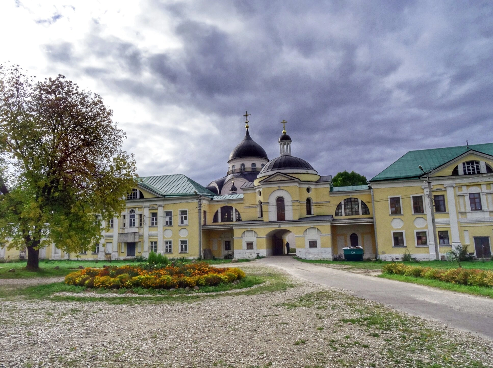 Основанная в XV веке, обитель имеет богатейшую историю, связанную с именами многих святых и великих князей. Монастырь неоднократно перестраивался, а свой современный облик приобрёл в XIX столетии. Ныне это действующий женский монастырь, являющийся центром духовной жизни Твери и объектом культурного наследия. Серое небо на фотографии, затянутое облаками, добавляет кадру атмосферности и подчёркивает величие и спокойную силу этого святого места.