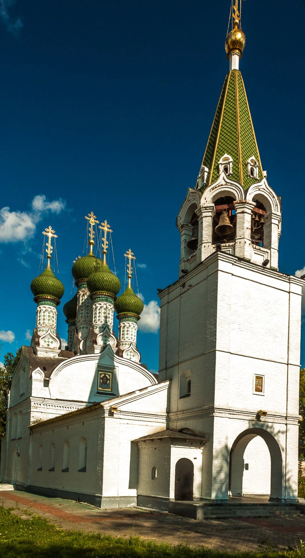 Архитектурный облик храма, снятого с стороны набережной, воплощает лучшие традиции русского стиля. Белоснежные стены церкви символизируют духовную чистоту и благодать, а зелёные кровли и сияющие золотом купола, увенчанные священными крестами, устремляются к небесам. Многочисленные купола, включая главный световой барабан, образуют сложную и гармоничную композицию, характерную для древнерусского храмостроительства. Высокая колокольня со шпилем и золотой маковкой доминирует в структуре здания, призывая верующих на молитву своим благозвучным благовестом.