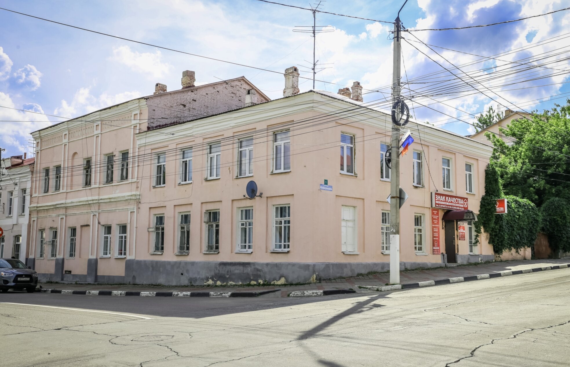 Фасад здания украшают многочисленные оконные проёмы с белосрачными наличниками, а венчает сооружение кирпичная кровля. На фронтоне здания различима вывеска с надписью «ЗНАК КАЧЕСТВА», что свидетельствует о современном использовании помещения. Несмотря на это, здание сохраняет статус объекта культурного наследия и продолжает оставаться важной частью архитектурного ансамбля Ельца.