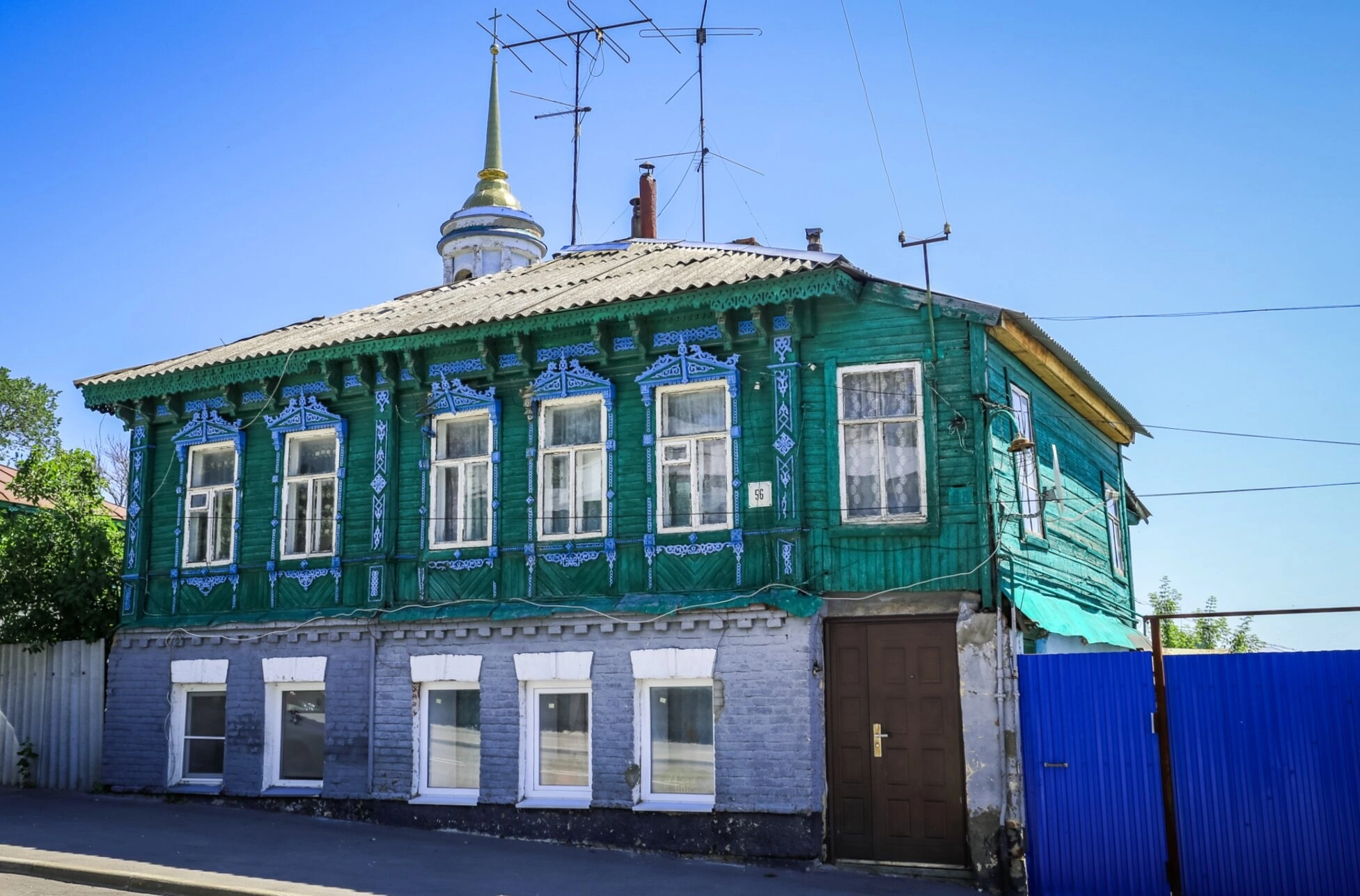 Здание церкви представляет собой гармоничное двухэтажное сооружение, где нижний этаж выполнен из серого кирпича, символизирующего прочность и основательность, а верхний деревянный этаж окрашен в зеленый цвет, что в православной традиции олицетворяет жизнь и вечность. Деревянная часть храма богато украшена резными наличниками и декоративными элементами синего цвета, напоминающими о небесной чистоте и Богородичном начале.