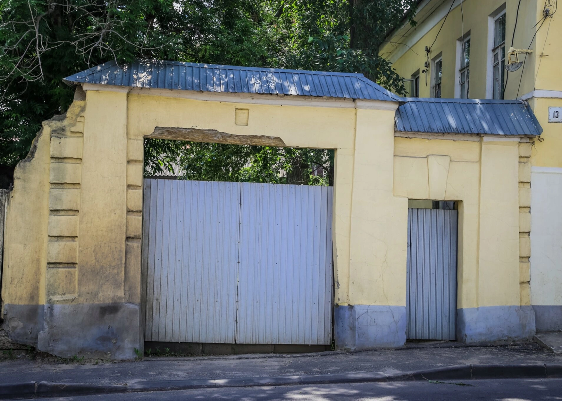 Справа от врат четко виден номер дома, однако это не умаляет сакральной значимости места, ибо храм Божий пребывает превыше мирской нумерации. Ворота и ограждение создают особую атмосферу предстояния перед входом в дом молитвы, где верующие обретают духовное утешение.