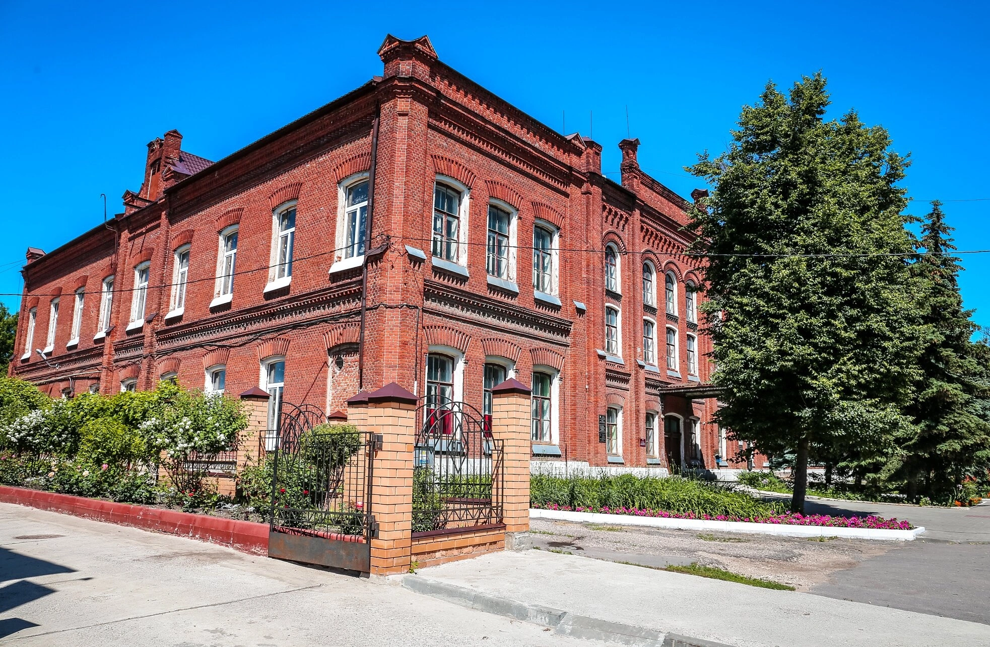 Здание выполнено в традициях русско-византийского стиля из красного кирпича с изящными декоративными элементами фасадной кладки. Архитектурный облик храма характеризуется строгой симметрией, высокими арочными окнами с фигурным обрамлением и выразительным силуэтом, увенчанным традиционным пятиглавием.