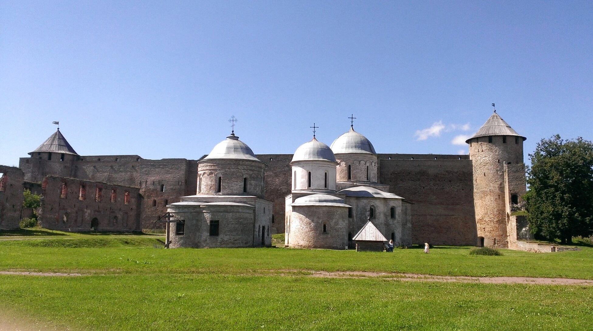 На представленной фотографии запечатлена Успенская церковь, расположенная на территории Ивангородской крепости в одноимённом городе Ленинградской области. Этот православный храм, освящённый в честь Успения Пресвятой Богородицы, является одним из древнейших сакральных сооружений Северо-Западного региона России.