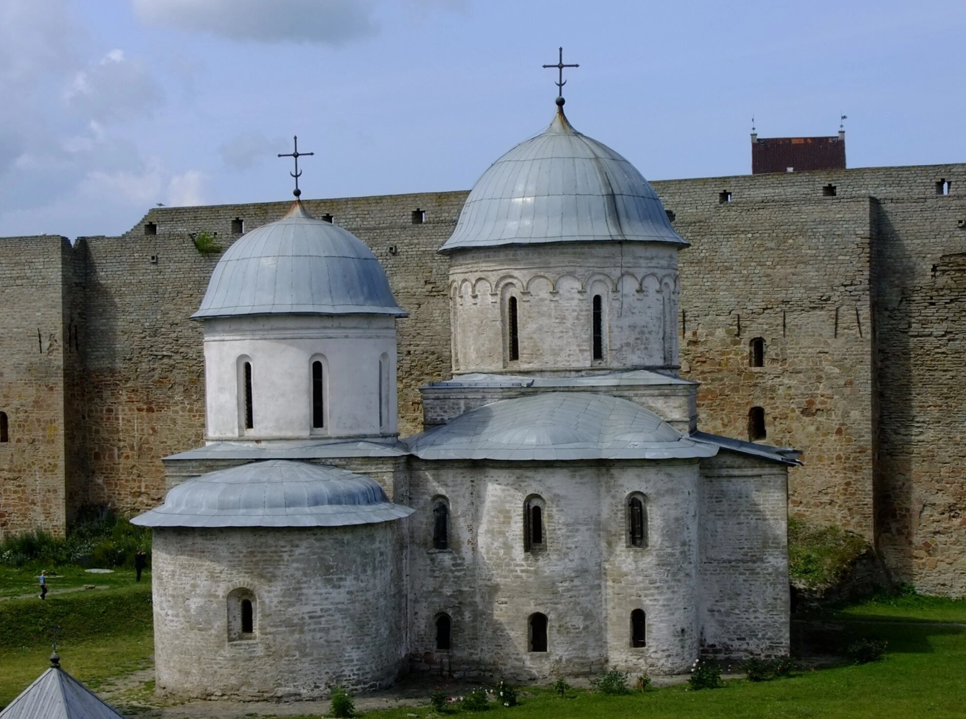 На представленной фотографии запечатлён вид на православную святыню — каменный Успенский храм, расположенный в сердце древней Ивангородской крепости. Церковь Успения Пресвятой Богородицы является неотъемлемой частью историко-архитектурного ансамбля крепости, возведённой в XV веке по повелению царя Ивана III для защиты западных рубежей Русского государства.