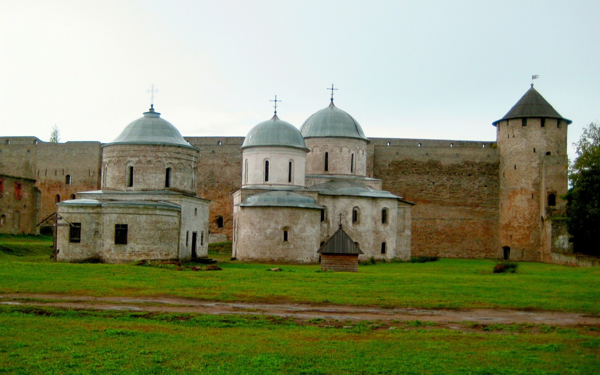 На представленной фотографии запечатлён вид на Свято-Успенский православный храм, расположенный на территории Ивангородской крепости. Святыня возвышается на крутом берегу реки Нарвы, напротив древней ливонской твердыни, символизируя духовную стойкость и непрерывность православной веры на этих пограничных землях.
