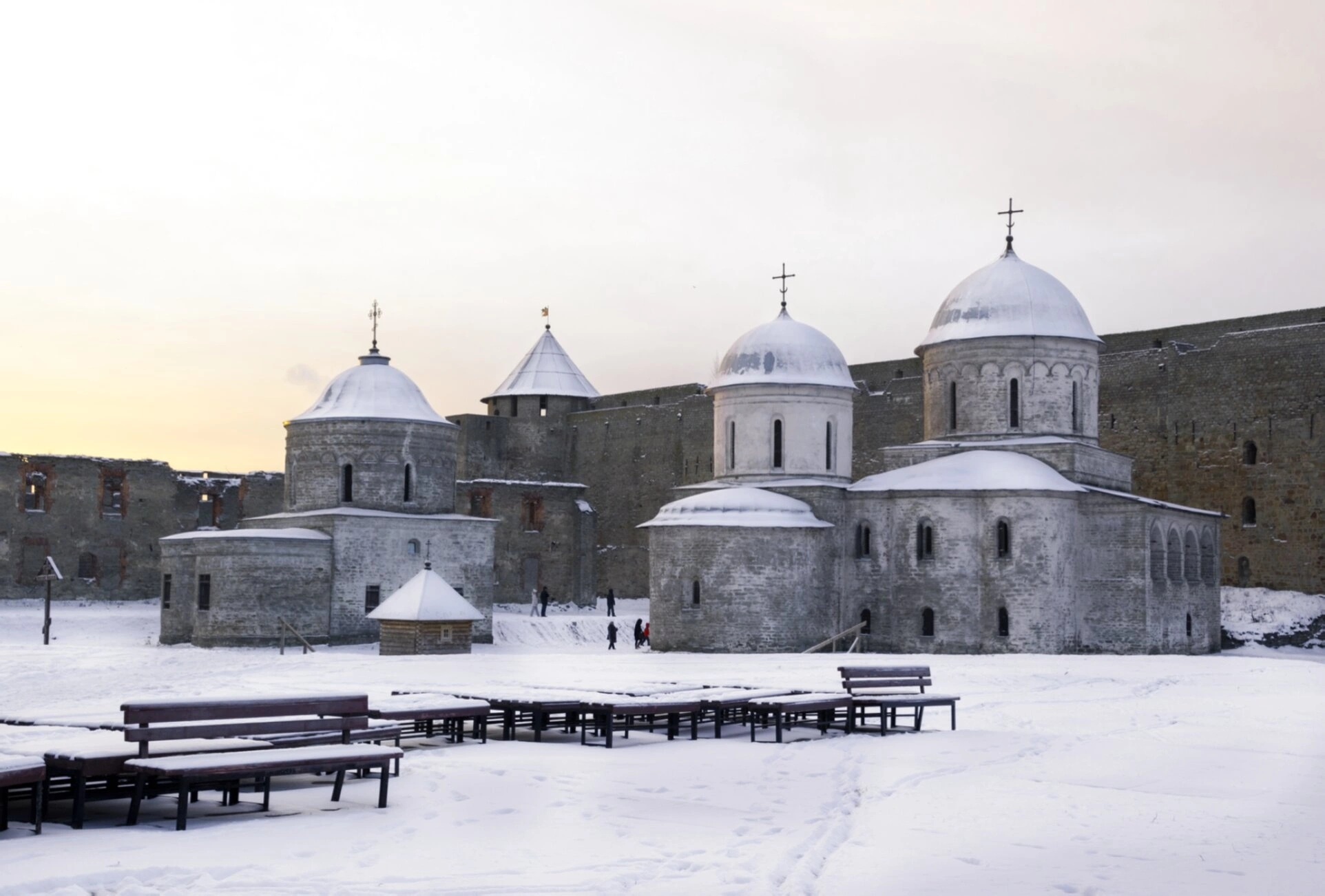 На фотографии запечатлена Церковь Успения Пресвятой Богородицы, расположенная на территории Ивангородской крепости. Этот древний православный храм был возведен в 1507-1509 годах по повелению царя Ивана III и является неотъемлемой частью историко-архитектурного ансамбля крепости. Автором проекта предположительно был венецианский зодчий Маркус Грек, что придает сооружению уникальные архитектурные особенности.