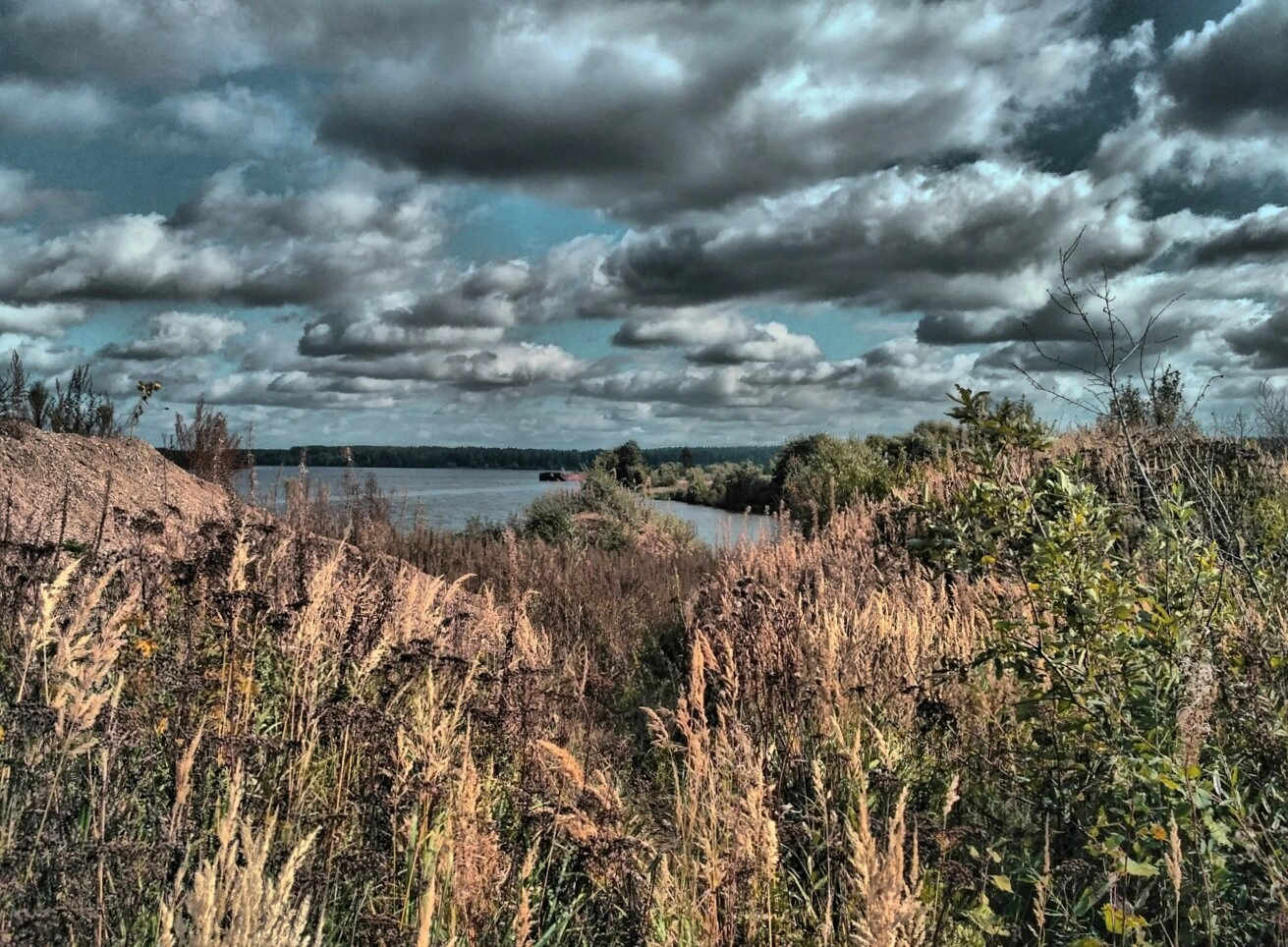 На заднем плане просматривается линия деревьев, обрамляющая весь пейзаж. Пасмурное осеннее небо с мощными облаками придаёт изображению особую духовную глубину и напоминает о бренности земного бытия. Общая цветовая гамма фотографии передаёт атмосферу умиротворения и православного смирения.