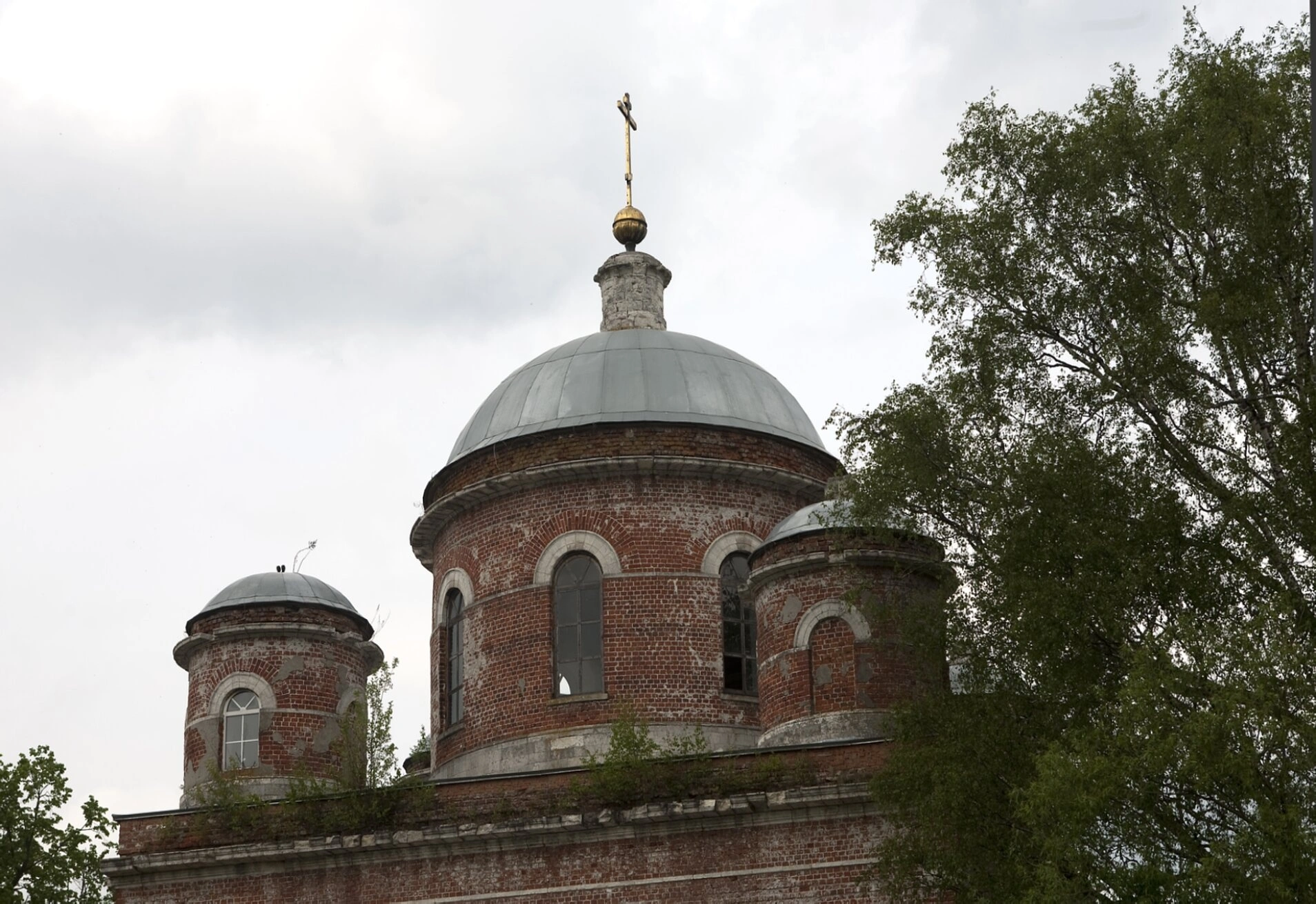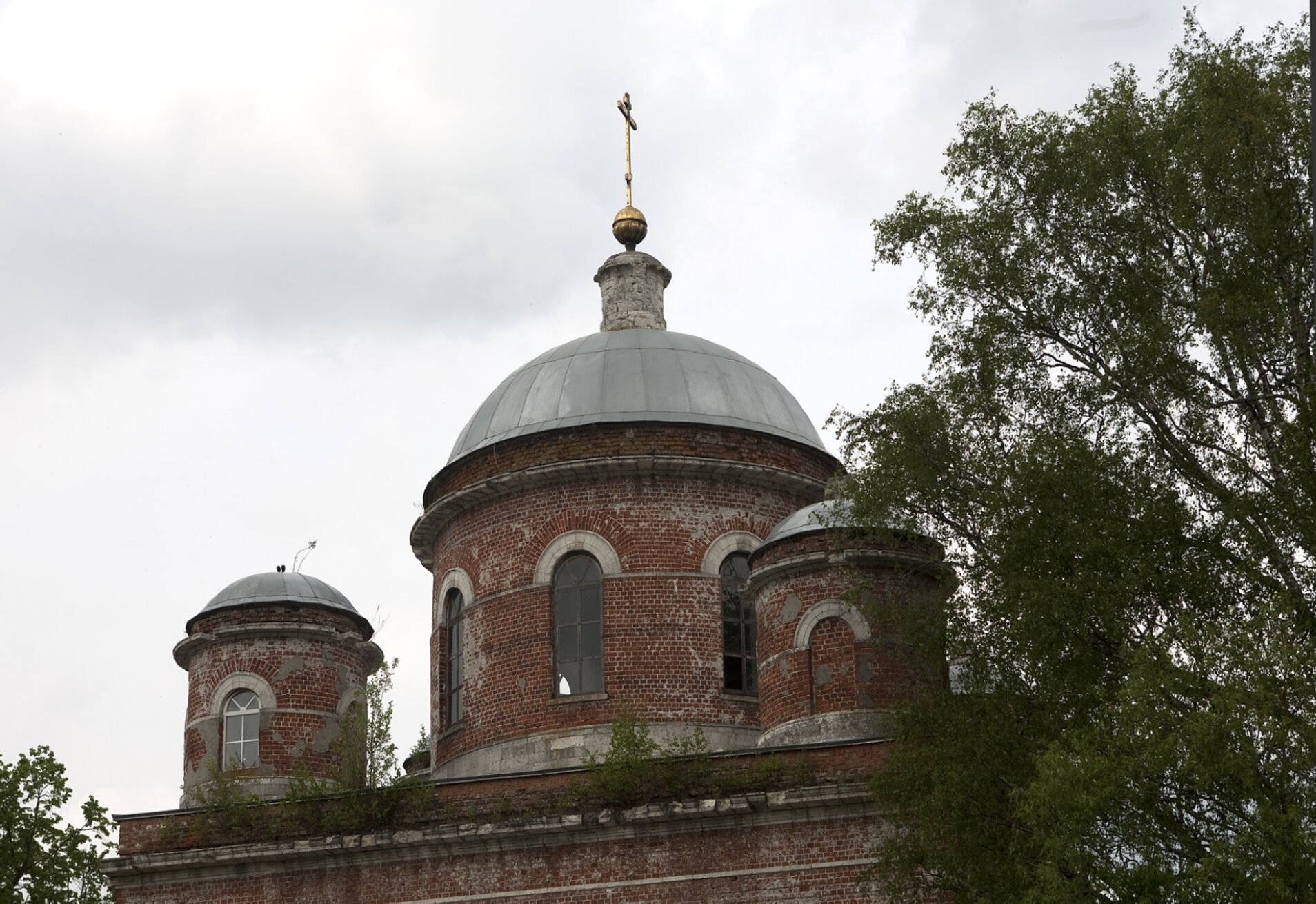 В центре композиции возвышается мощный барабан, увенчанный традиционным православным луковичным куполом, который символизирует пламя свечи, устремлённое к небесам. Купольная глава покрыта светоотражающим листовым железом, что создаёт игру света под лучами солнца и подчёркивает сакральную значимость храма. На самой вершине водружён восьмиконечный православный крест — символ искупительной жертвы Христа Спасителя.
