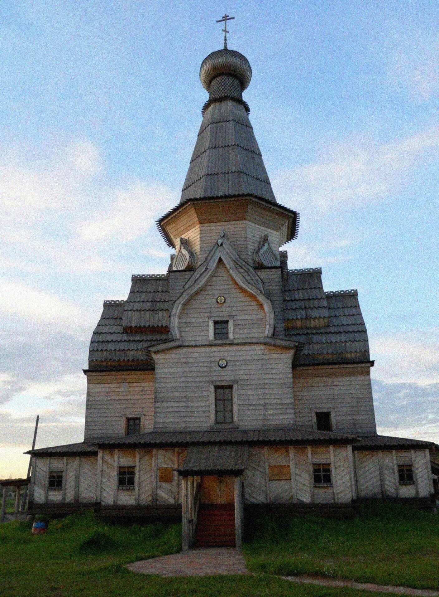 На представленной фотографии запечатлена жемчужина русского деревянного зодчества — Успенская церковь, расположенная в старинном поморском селе Варзуга на Кольском полуострове. Храм освящён в честь Успения Пресвятой Богородицы и является выдающимся памятником культовой архитектуры XVII столетия.