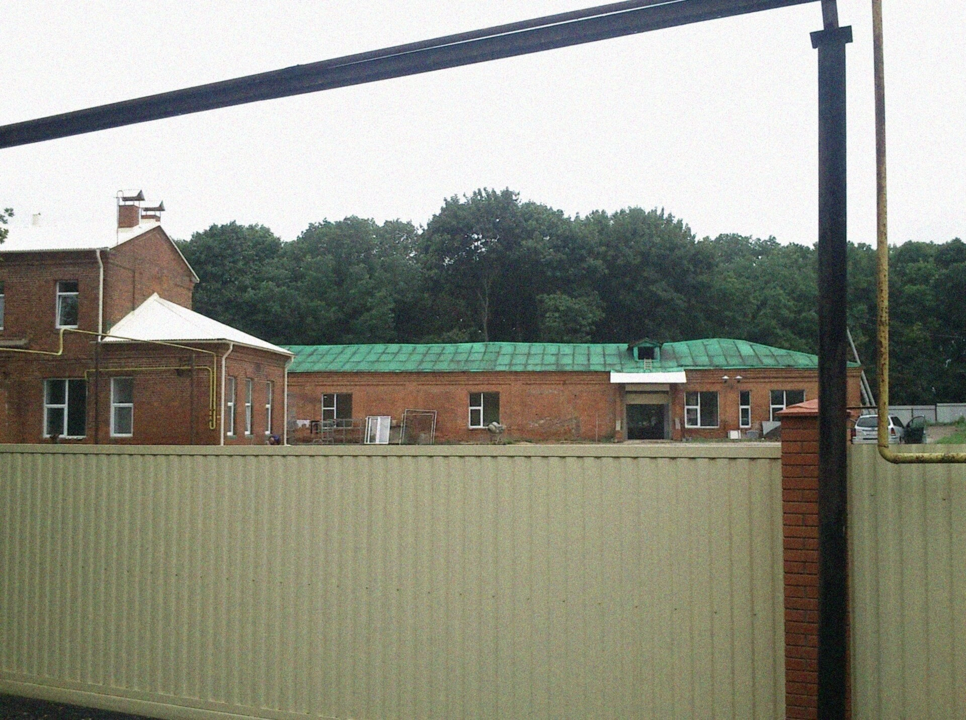 Святыня обнесена светлым металлическим ограждением, на переднем плане видны въездные ворота и опорные столбы, что подчёркивает благоустроенность церковной территории. Архитектурный ансамбль гармонично вписан в природный ландшафт - за церковными строениями простирается густой лес, создающий особую атмосферу уединённости и молитвенного покоя.