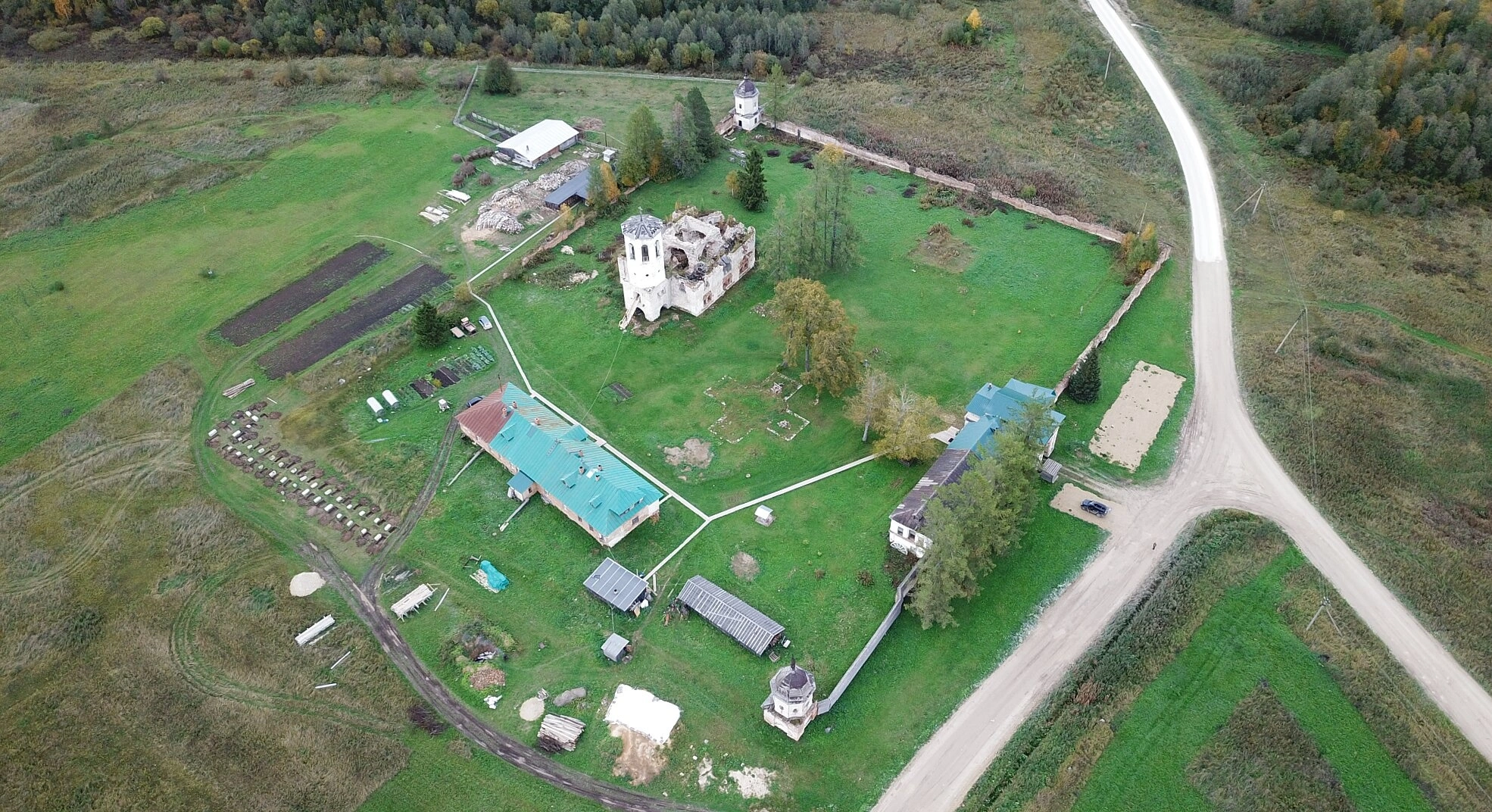 Успенский Александро-Ошевенский монастырь: вид с высоты птичьего полета