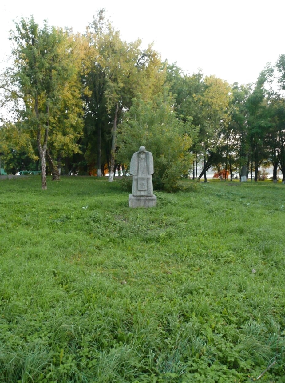 На представленной фотографии запечатлена благоустроенная территория древнейшей православной обители — Успенского Отроча монастыря в городе Твери. В центре композиции возвышается каменный монумент, вероятно, являющийся памятником или поклонным крестом, установленным в честь значимого события в истории святой обители. Монумент расположен посреди ухоженного зелёного луга, символизируя гармонию божественного творения и человеческого труда во славу Господа.