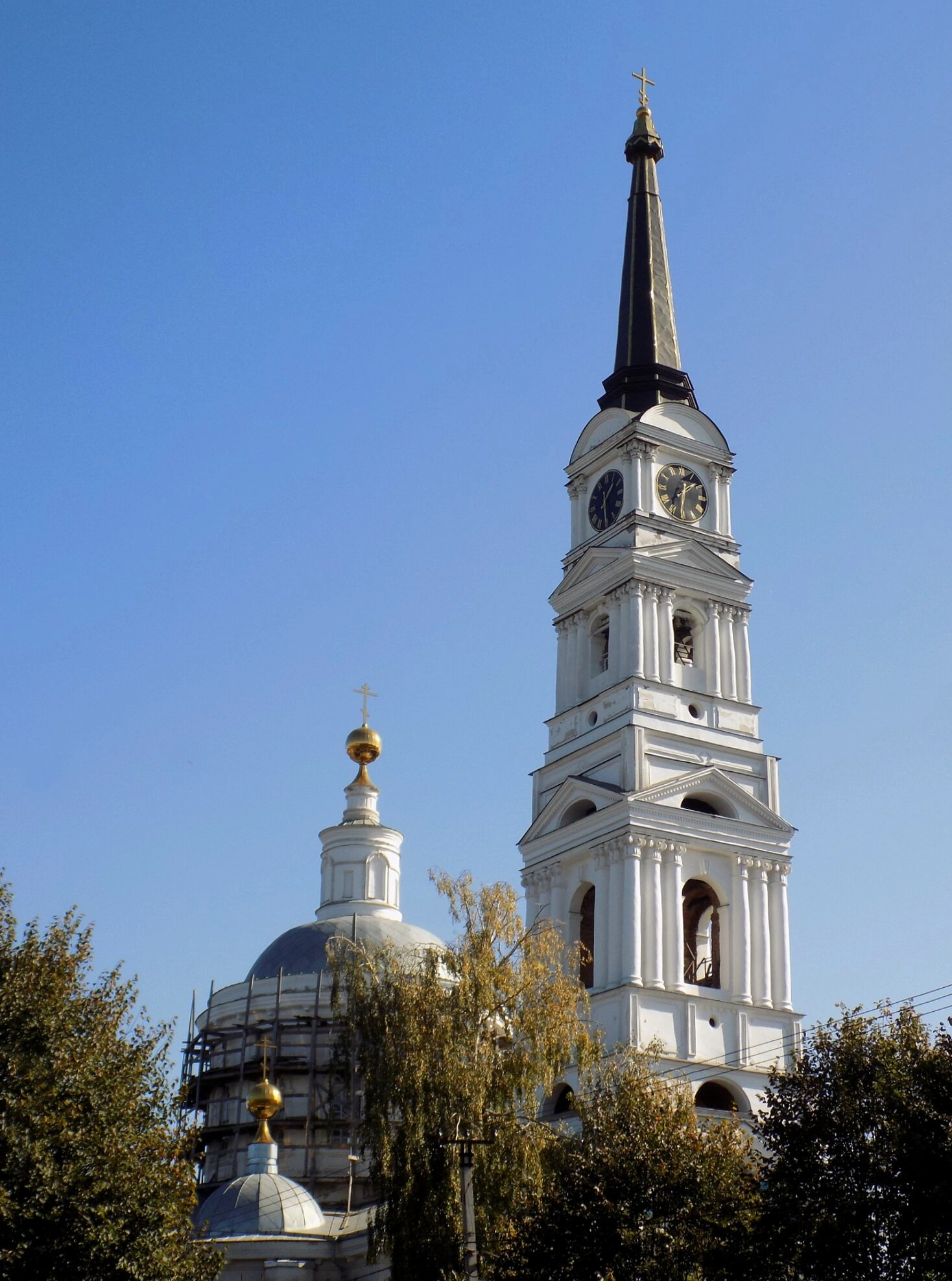 Снимок сделан в погожий осенний день, о чём свидетельствуют деревья с золотистой листвой, обрамляющие собор, и чистое лазурное небо на заднем плане. Эта фотография передаёт не только архитектурную красоту, но и атмосферу благодати и вечности, присущую этому священному месту. Успенский собор на протяжении всей своей истории был духовным центром Рыльска, и ныне он продолжает быть действующим храмом, где совершаются богослужения и возносятся молитвы ко Пресвятой Богородице.