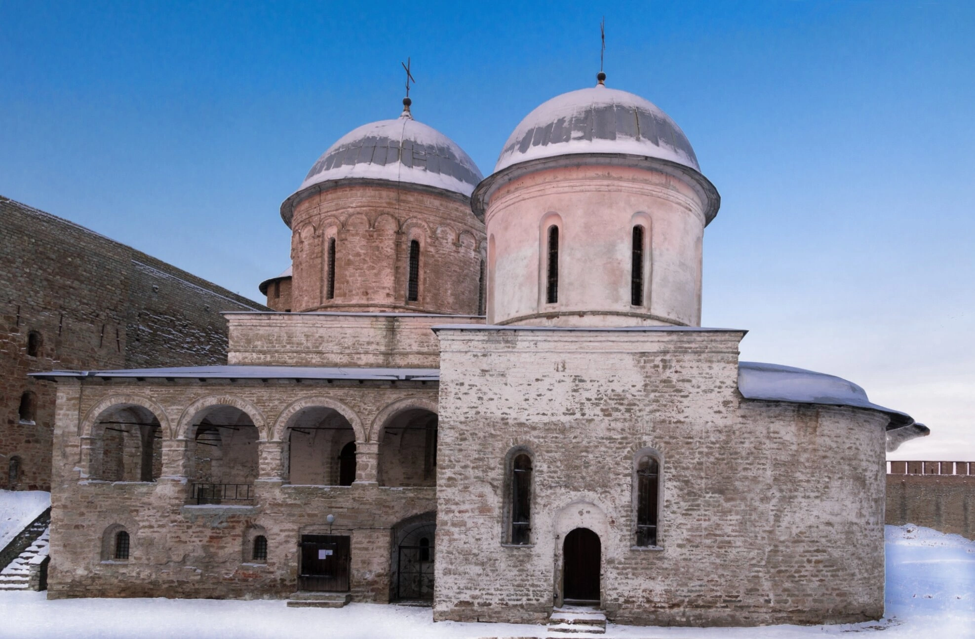 Собор был возведён в период с 1507 по 1509 год по повелению великого князя московского Василия III и изначально служил garrisonным храмом для защитников западных рубежей Русского государства. Архитектура храма отличается строгостью и величием, характерными для псковской строительной школы. Массивные стены, узкие оконца-бойницы и лаконичный декор подчёркивают его оборонное значение и суровый дух времени своего создания.