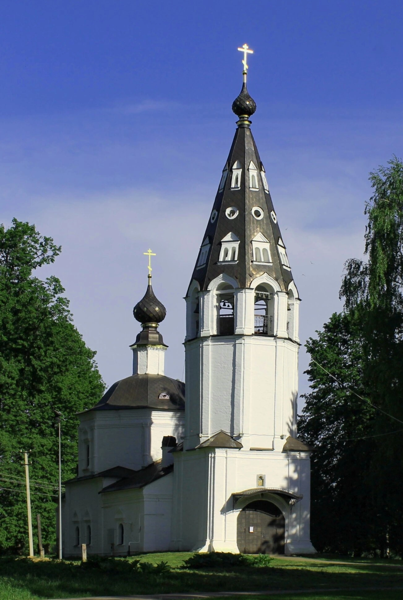 В конце XVIII века к собору была пристроена высокая шатровая колокольня, которая органично дополнила архитектурный ансамбль. Декор фасадов отличается строгой простотой, что напоминает архитектурные традиции XVII столетия. Восьмерик разделён полуколоннами, поддерживающими антаблемент.