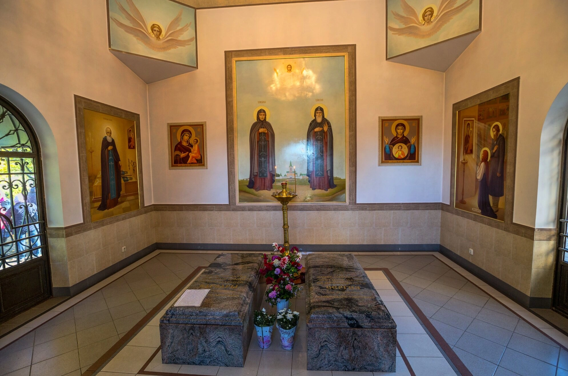 Архитектура самой усыпальницы вызывает благоговение. Сводчатые потолки украшены фресковыми росписями с изображениями ангельских сил, а оконные и дверные проёмы выполнены в виде арок, что придаёт пространству особую сакральность и устремлённость к горнему миру. Общая атмосфера этого места пронизана глубоким молитвенным духом и благодатью, что делает его одним из важнейших центров паломничества в северо-западном регионе России. Сюда приезжают верующие, чтобы почтить память святых родителей и испросить их молитвенного предстательства пред Господом о укреплении семьи и воспитании детей в вере и благочестии.