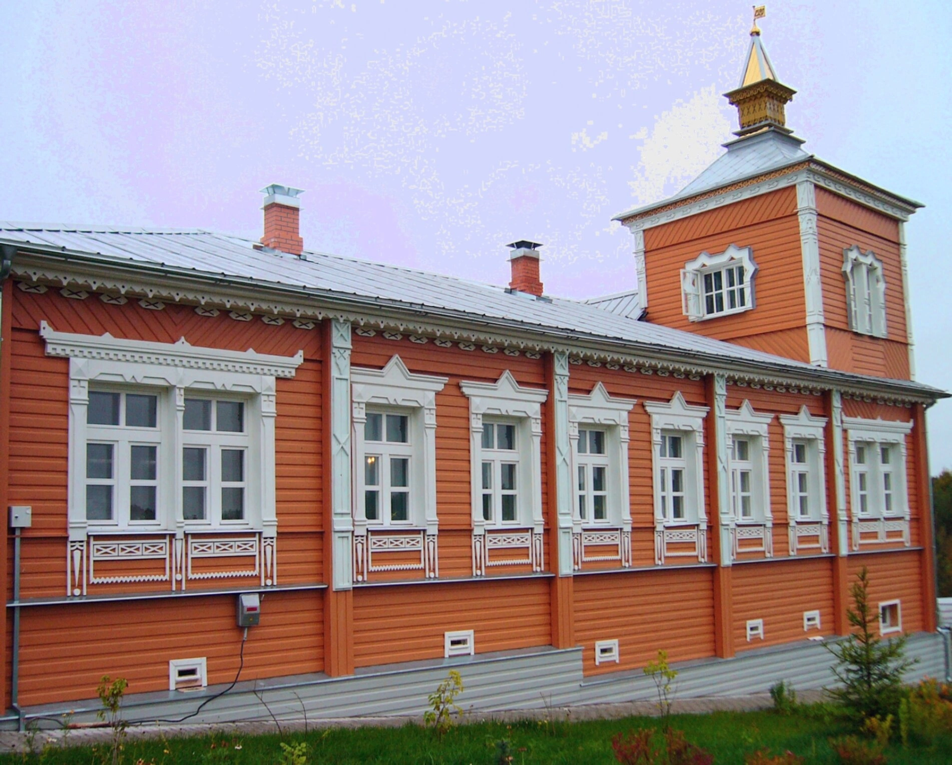 На представленной фотографии запечатлён трапезный корпус Важеозерского Спасо-Преображенского мужского монастыря, древней православной обители, расположенной на живописном берегу Важозера в Олонецком районе Республики Карелия.