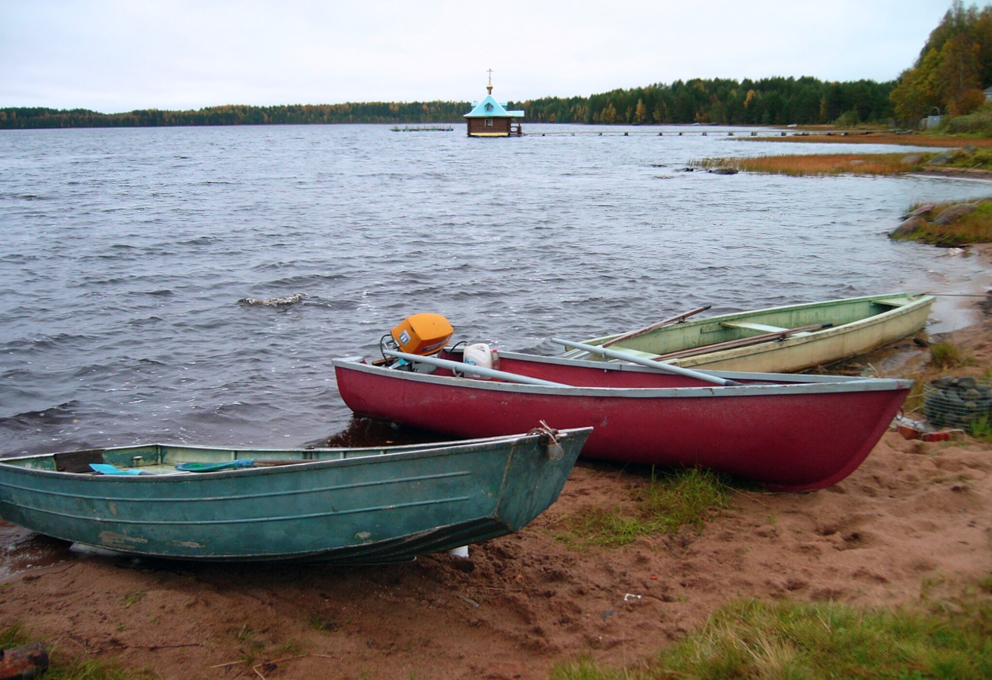 На переднем плане фотографии виднеются лодки — главное средство передвижения в этих местах, что подчёркивает удалённость и уединённость монастыря, окружённого водами озера и бескрайними лесами. Спокойная гладь воды и окружающая природа создают атмосферу благодатного покоя и умиротворения, свойственную этому святому месту.