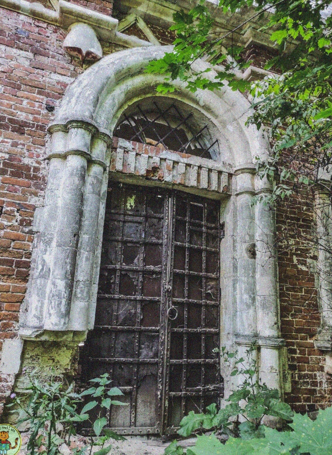 Прискорбно наблюдать нынешнее состояние святого места: кирпичная кладка стен вокруг входа имеет значительные разрушения, каменные элементы портала покрыты трещинами и сколами. Особую атмосферу утраты подчеркивает обильная растительность — кустарники и травы, оплетающие основание храма и частично скрывающие верхнюю часть арки.