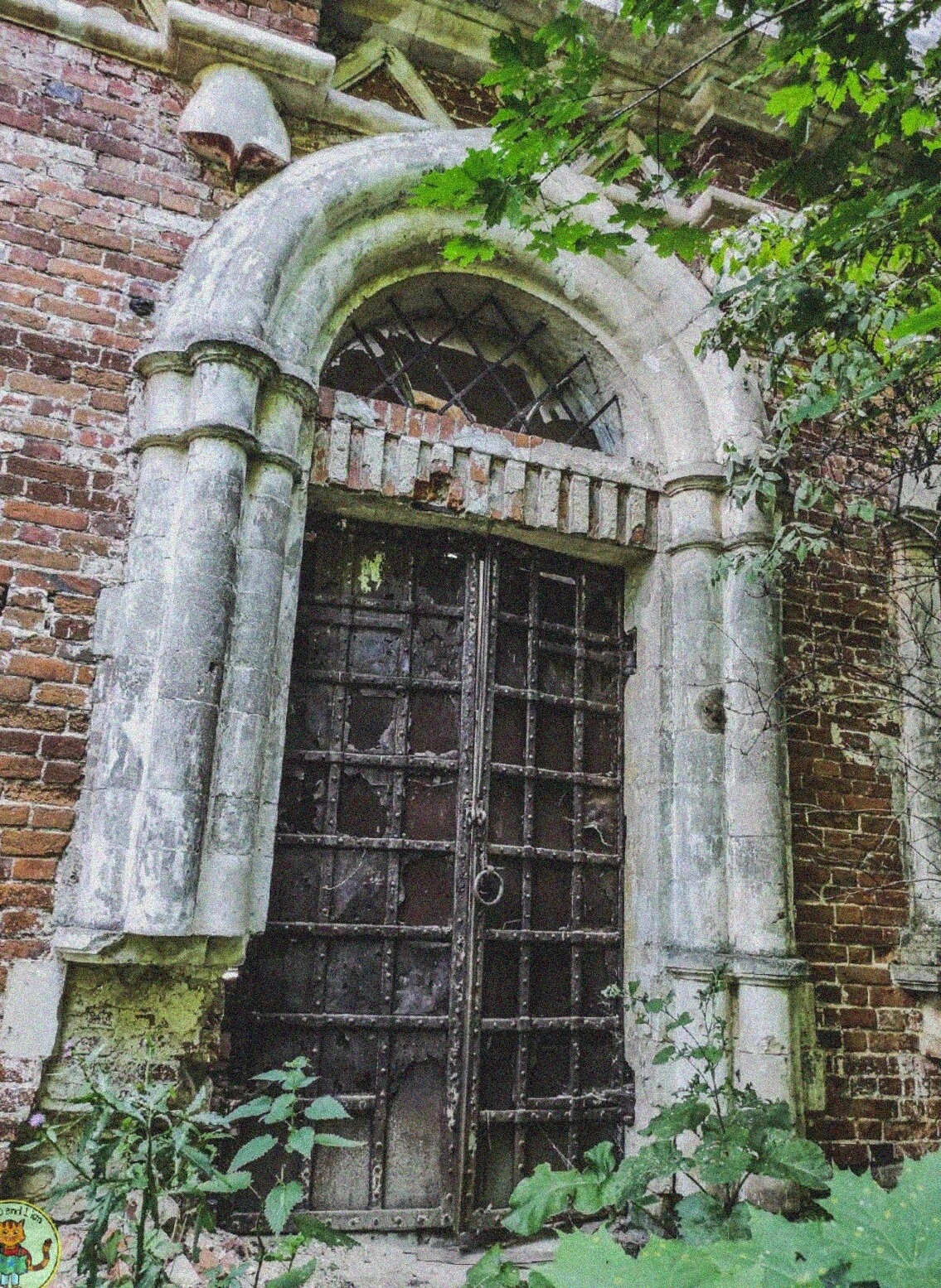 Двери, некогда встречавшие богомольцев, ныне предстают в виде ржавых створок с облупившейся краской. На одной из них сохранился кованый дверной молоток в форме кольца — немой свидетель былых времен, когда его звук созывал верующих на молитву. Отсутствие стекол в верхних частях дверей позволяет заглянуть во внутреннее пространство храма, погруженное во мрак и безмолвие.
