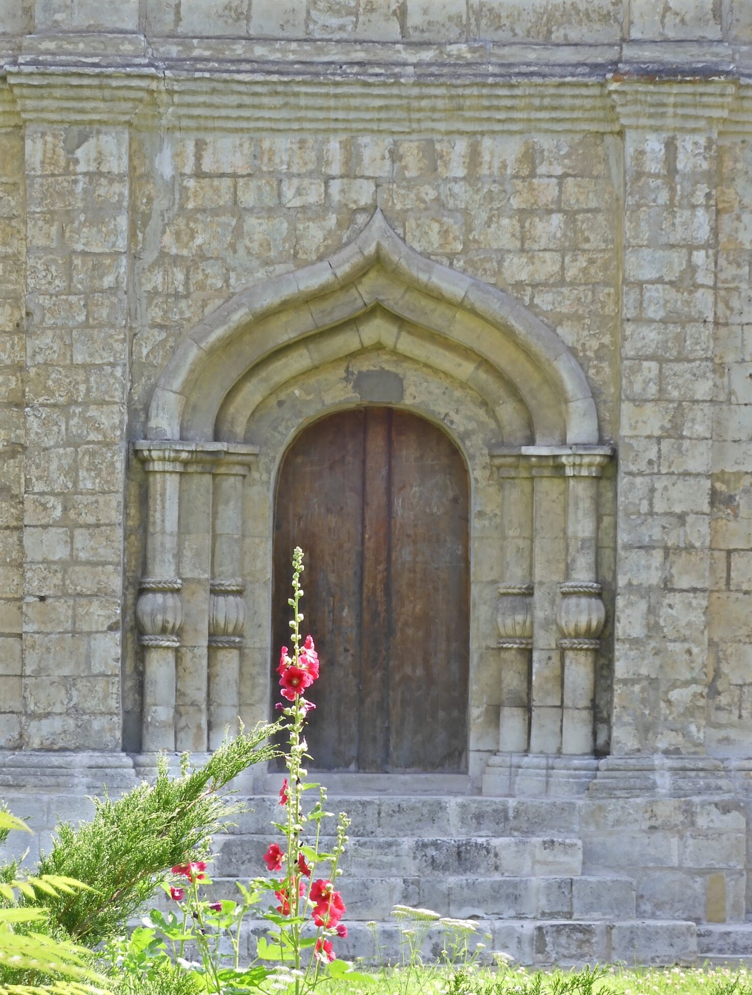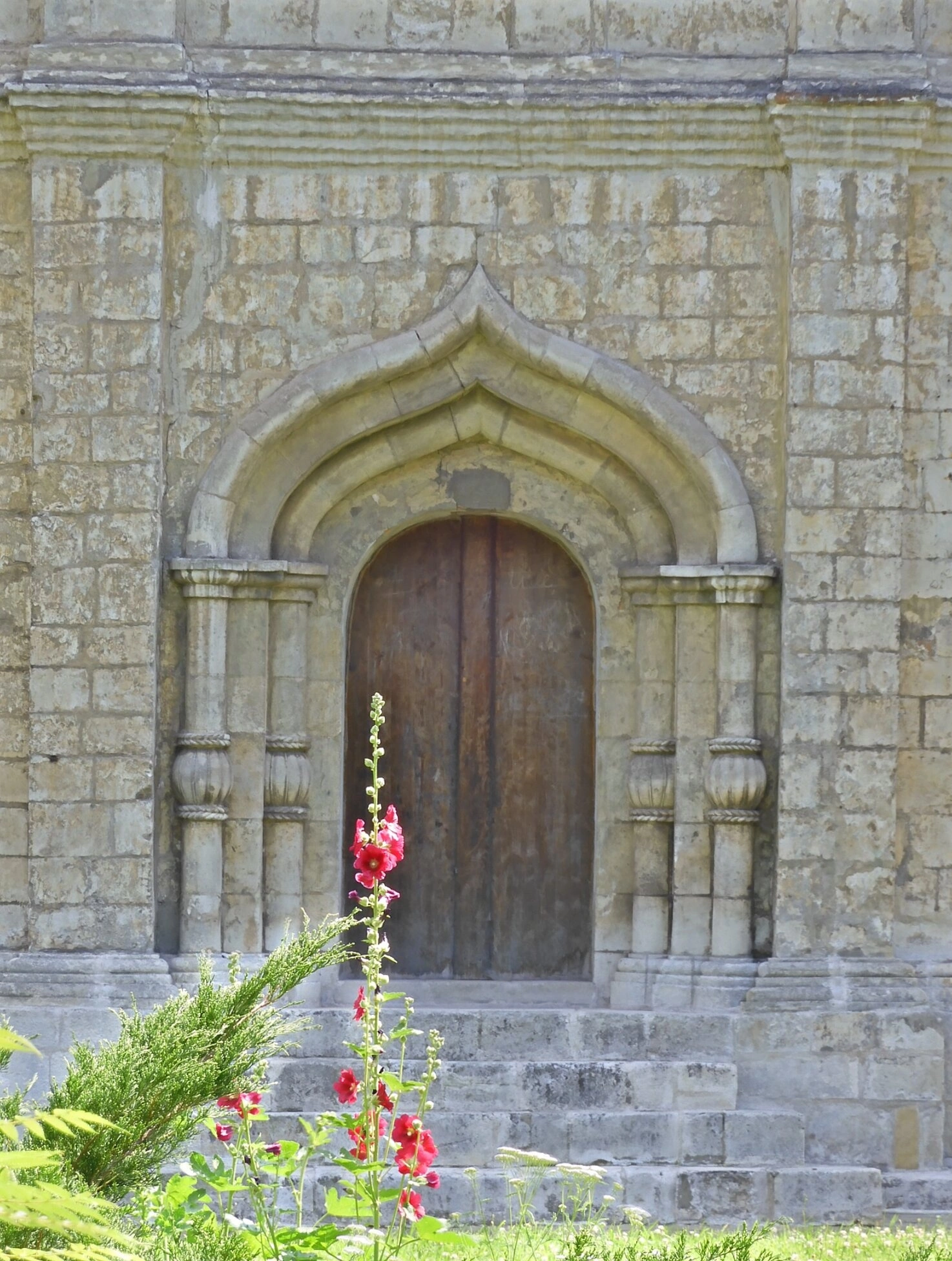 На представленной фотографии запечатлён вход в старинный храм Святого мученика Трифона, что в Напрудном. Этот уникальный памятник древнерусского зодчества, расположенный в Мещанском районе Москвы, является одним из древнейших сохранившихся каменных храмов столицы, возведённым в конце XV столетия.
