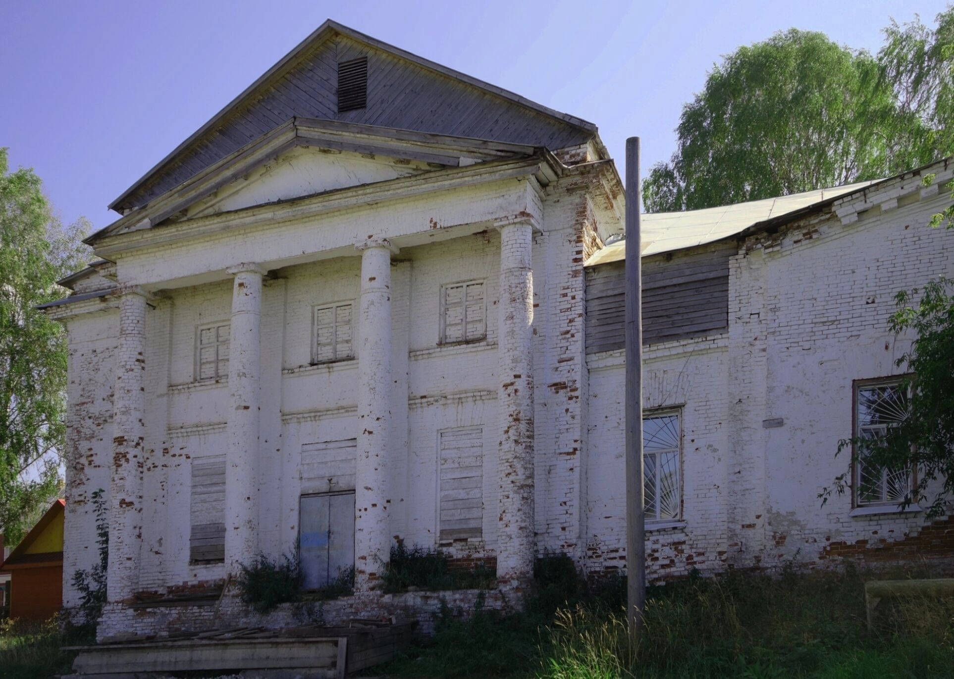 Храм, судя по сохранившимся архитектурным формам, был возведён в традициях русского классицизма. Его главный фасад украшает монументальный четырёхколонный портик тосканского ордера, увенчанный треугольным фронтоном, что придавало зданию строгую торжественность и каноническую завершённость. Арочные и прямоугольные оконные проёмы, а также симметричная композиция фасада свидетельствуют о внимании зодчих к традиционным пропорциям церковного строительства той эпохи.