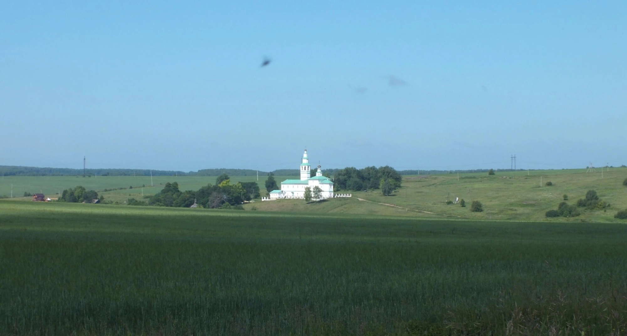 Фотография, сделанная в ясный солнечный день, передаёт атмосферу умиротворения и благодати, окружающую этот намоленный исторический храм. Чистое голубое небо, зелёные просторы и светлый образ церкви создают целостный образ русского духовного ландшафта, в котором памятник архитектуры обретает новую жизнь.