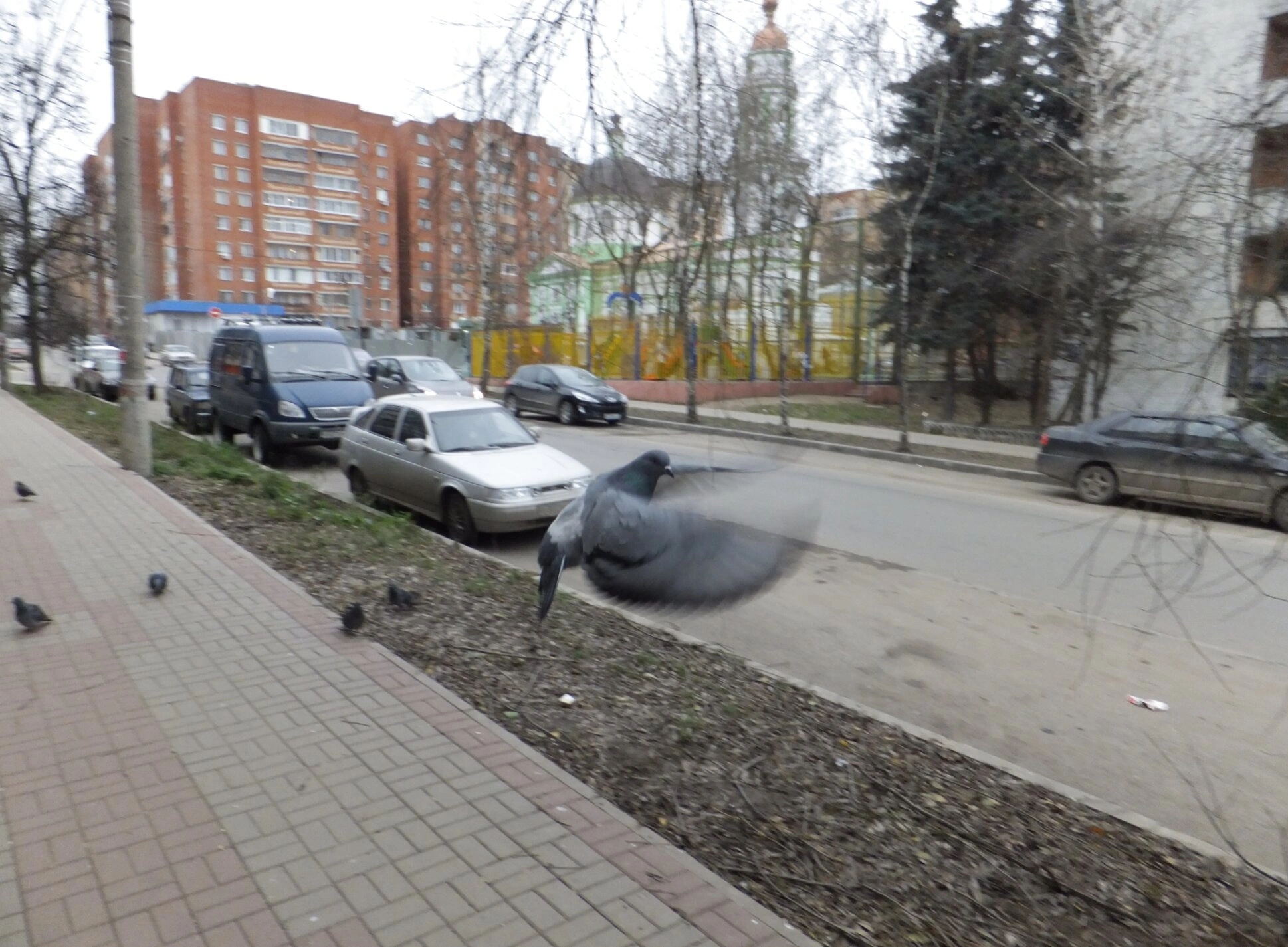 На переднем плане изображения обращают на себя внимание голуби, символизирующие в христианской традиции мир и дух Святой. Одна из птиц запечатлена в движении, с размытыми крыльями, что придаёт снимку особую динамику и живость. Припаркованные у тротуара автомобили свидетельствуют о обыденности городской жизни, протекающей в непосредственной близости от святого места.