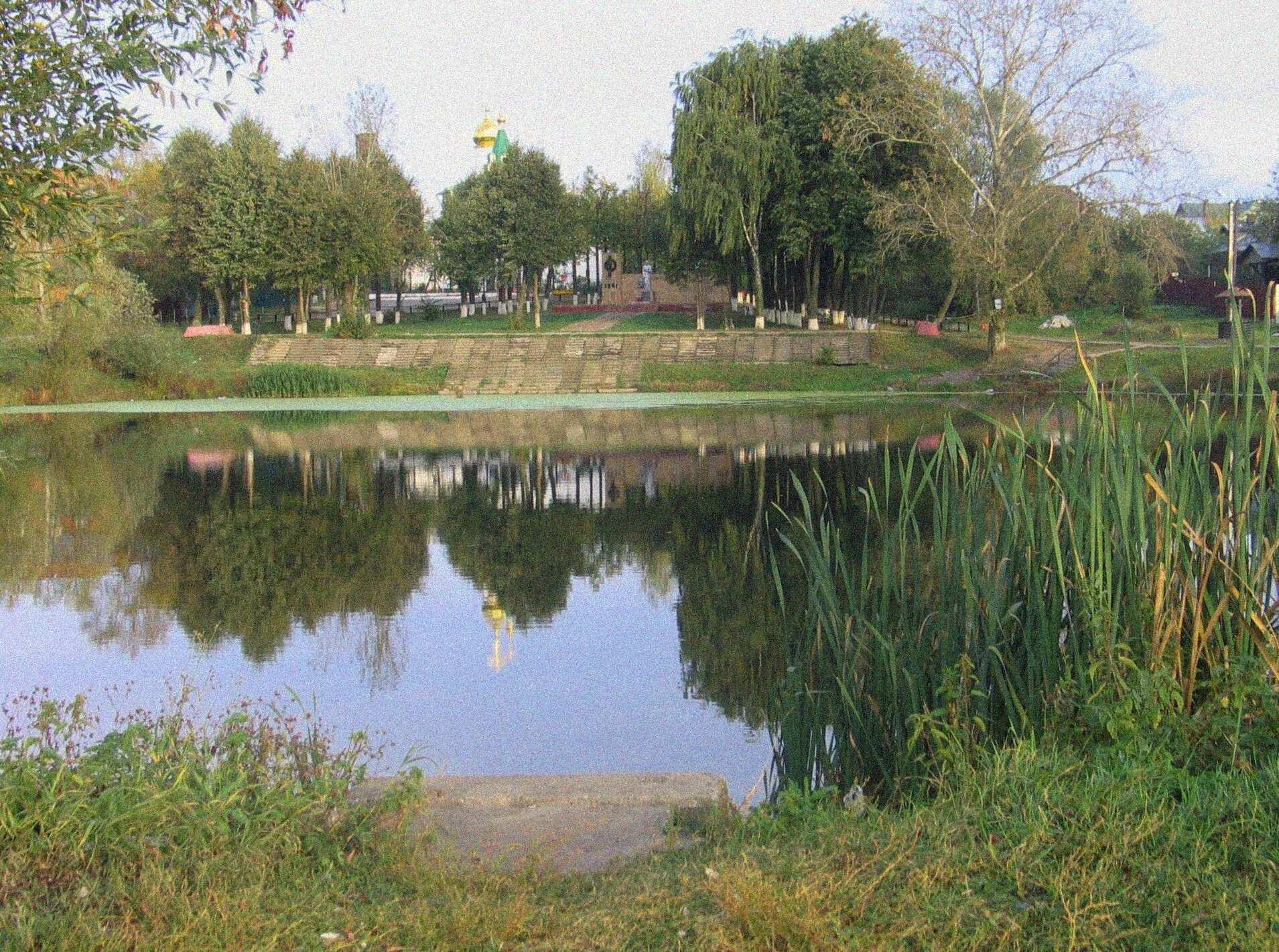 Пруд, изображённый на фотографии, является неотъемлемой частью этого святого места, создавая вместе с храмом единый благостный ансамбль, где творение рук человеческих находится в неразрывной связи с творением Божиим. Спокойная водная гладь символизирует мир душевный, к которому стремится каждый православный христианин, а отражение храма в воде напоминает о необходимости очищения сердца для принятия Божественной благодати.