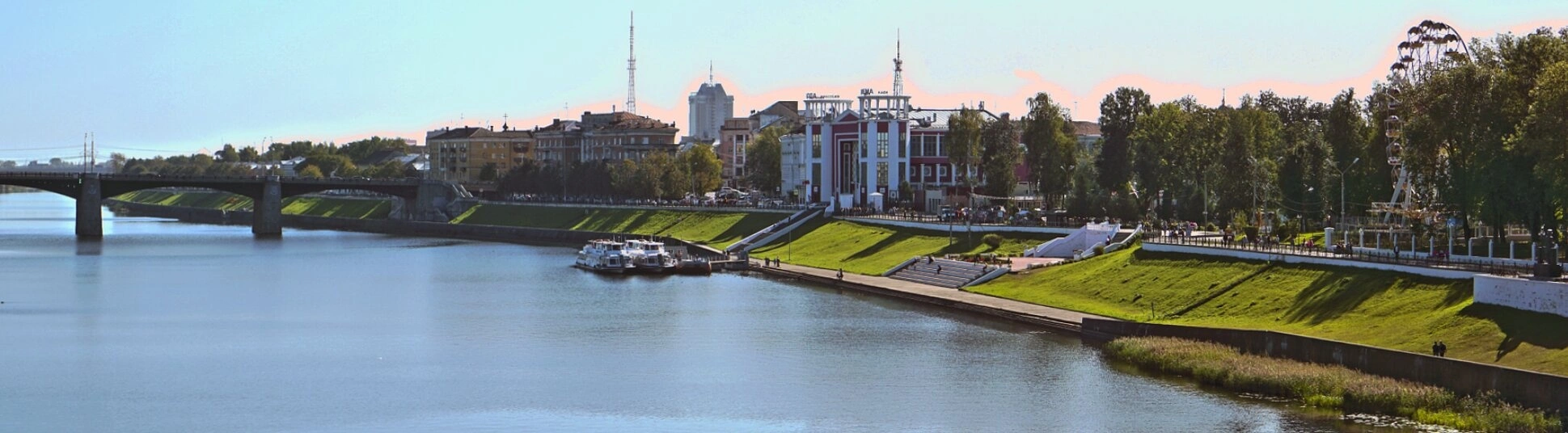 Вид на Волгу и Староволжский мост в Твери