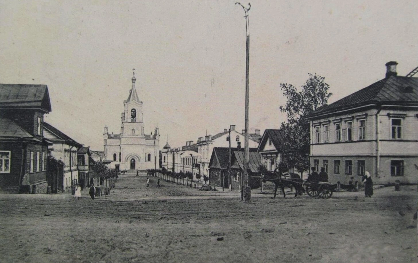 Вид на Воскресенский переулок и Фото собора Воскресения Христова в Луге