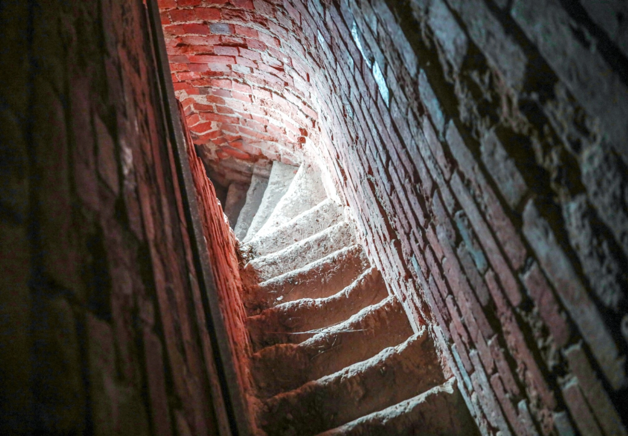 Лестница демонстрирует характерную для церковной архитектуры начала XX века кирпичную кладку, где каждый камень хранит историю прихожан, участвовавших в строительстве храма. Свет, падающий сверху, символически освещает путь восхождения, выхватывая из полумрака массивные каменные ступени, ведущие к колоколам. Эта колокольня имела особое значение для местных жителей — сохранились свидетельства, что звонить в колокола разрешалось всем, и молодежь делала это с особой радостью.