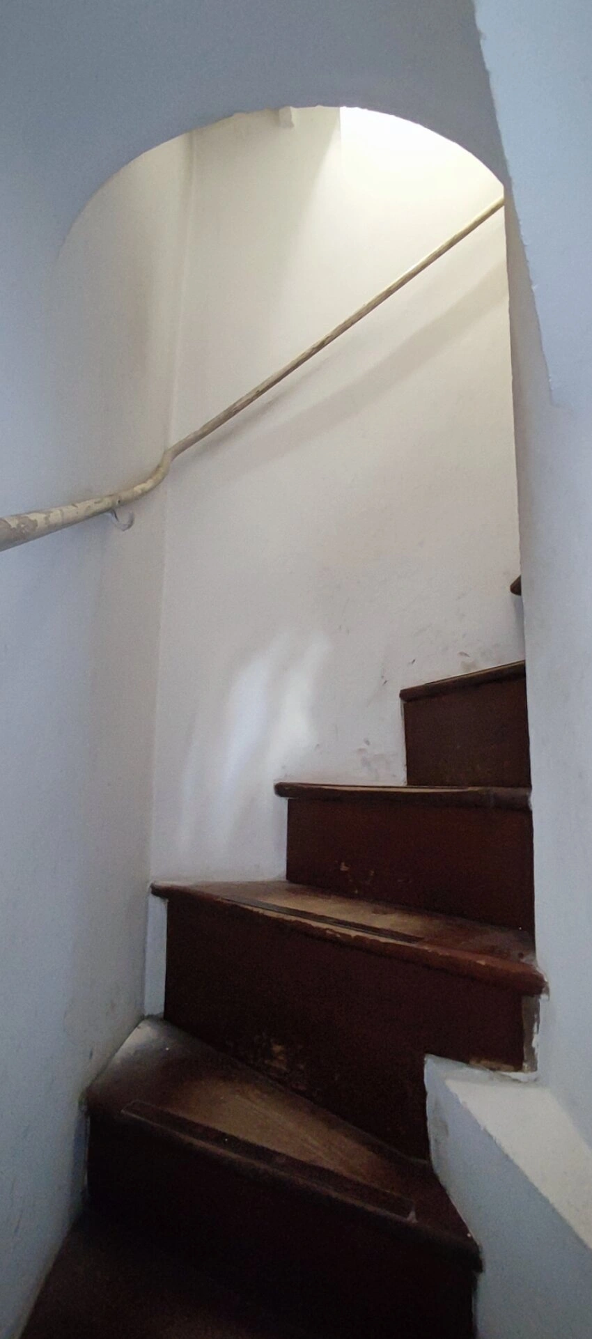 Ступени лестницы выполнены из тёмного дерева и несут на себе следы многолетнего использования, что свидетельствует о постоянном паломничестве верующих в этот святой храм. Изгиб лестницы, уходящий вправо и вверх, символически напоминает о духовном восхождении к горним высотам.