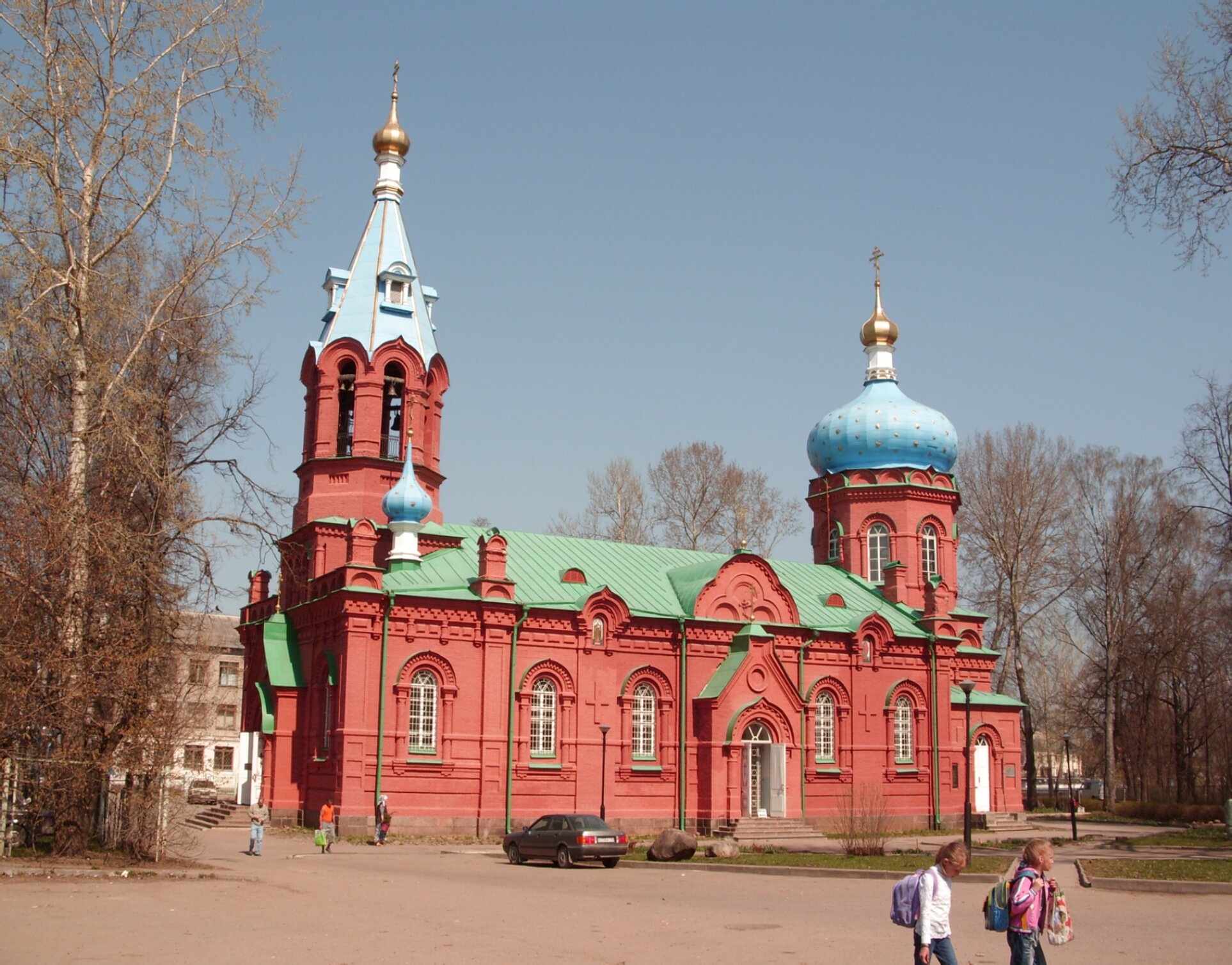 Архитектурный облик храма выполнен в псевдорусском стиле из красного кирпича. Здание венчают изящные ярко-голубые купола, увенчанные золочёными православными крестами, и бирюзовые кровли, что создаёт яркий цветовой акцент и символизирует небесную чистоту. Над входом возвышается стройная шатровая колокольня, являющаяся композиционным центром фасада. Арочные оконные проёмы с белым обрамлением и кирпичный декор придают сооружению особую выразительность и торжественность.
