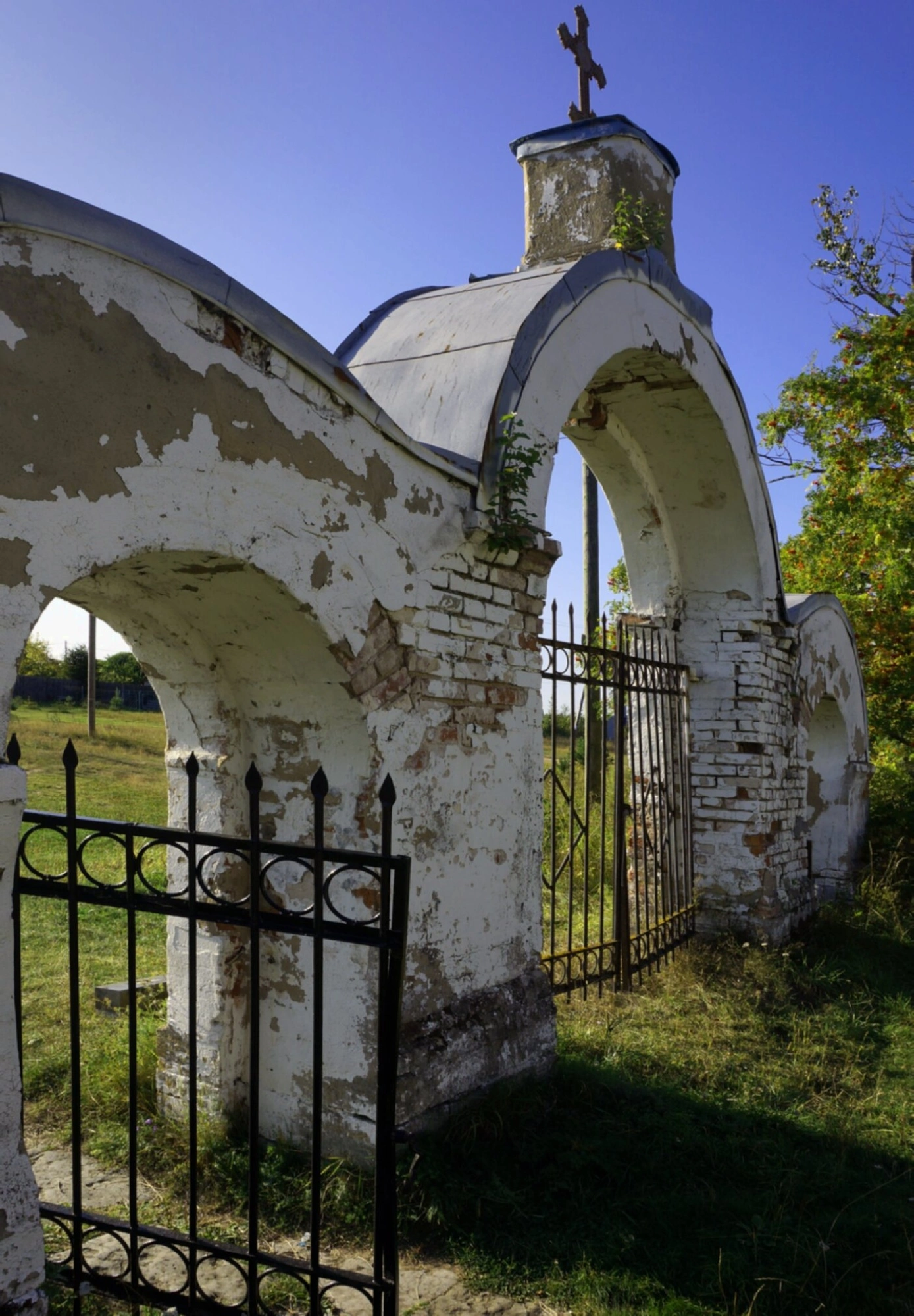 На представленной фотографии запечатлены исторические ворота церкви во имя святых первоверховных апостолов Петра и Павла, расположенной в городе Новая Ладога Ленинградской области. Сохранившееся каменное сооружение представляет собой монументальные въездные ворота, выполненные из кирпича с последующей оштукатуренной отделкой.