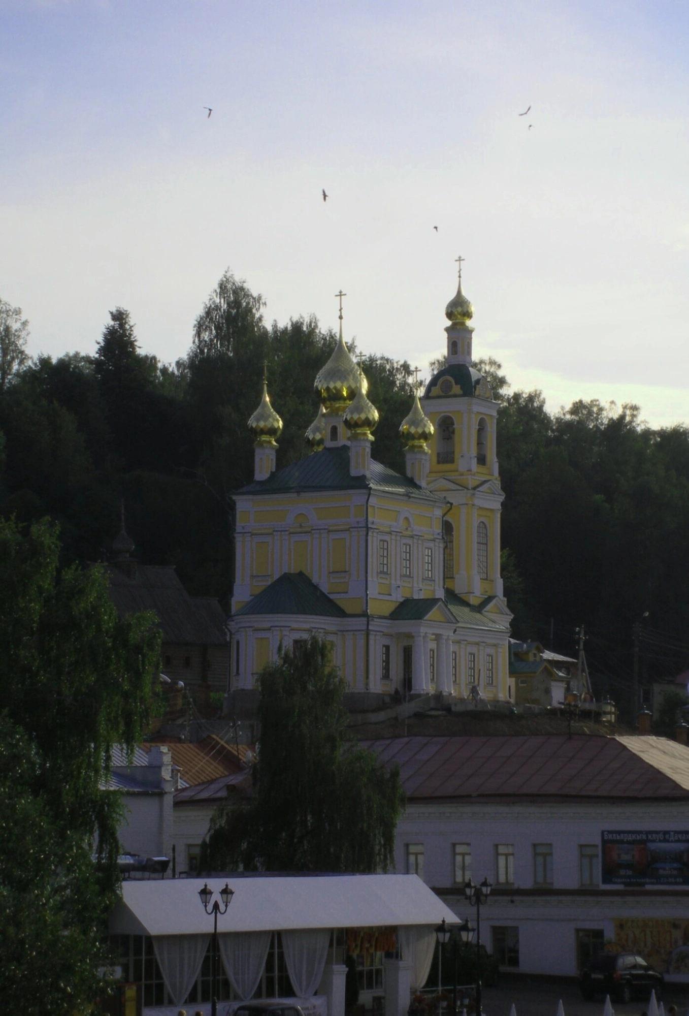 Церковь возведена в традициях русского церковного зодчества и освящена в честь Светлого Христова Воскресения. Её стройная колокольня и золочёные купола, сияющие под небосводом, создают неповторимый силуэт, гармонично вписанный в природный ландшафт волжского берега. Белоснежные стены и ярко-жёлтые архитектурные детали придают храму нарядный и праздничный вид.
