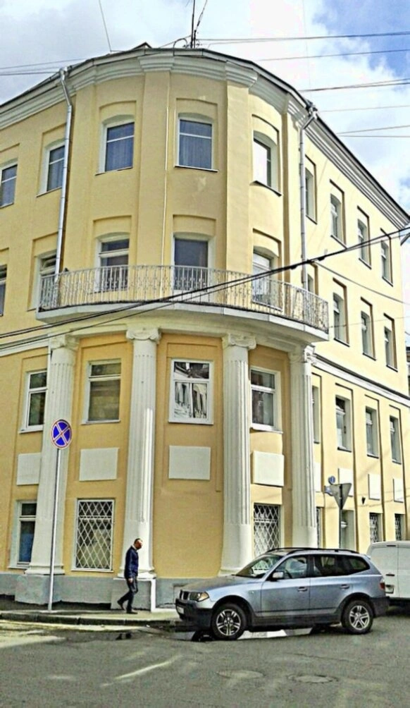 Окружение часовни передаёт атмосферу московского переулка. На переднем плане виден припаркованный автомобиль, а на тротуаре - прохожий, что свидетельствует о том, что святыня органично вписана в городскую среду. Слева от здания установлен дорожный знак, указывающий на расположение часовни в активной городской зоне.