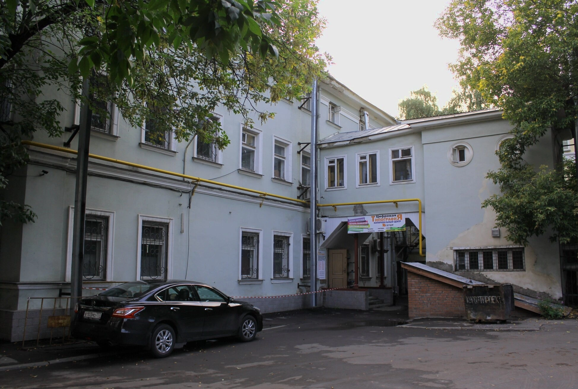 На представленной фотографии запечатлена Воскресенская часовня, расположенная в Мещанском районе Москвы. Это двухэтажное здание, выполненное в бледно-зеленых тонах, представляет собой ценный образец церковной архитектуры.