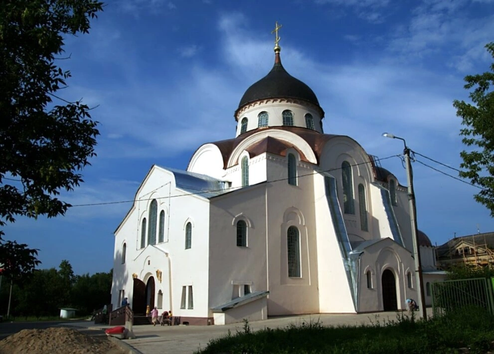 Белоснежный храм, увенчанный тёмным куполом, на котором сияет золотой православный крест, символизирующий победу Господа нашего Иисуса Христа над смертью, ярко выделяется на фоне ясного неба с лёгкими облаками. Чистота белых стен олицетворяет духовную чистоту и святость этого места соборной молитвы. Архитектурный облик собора характерен для русского церковного зодчества периода эклектики.