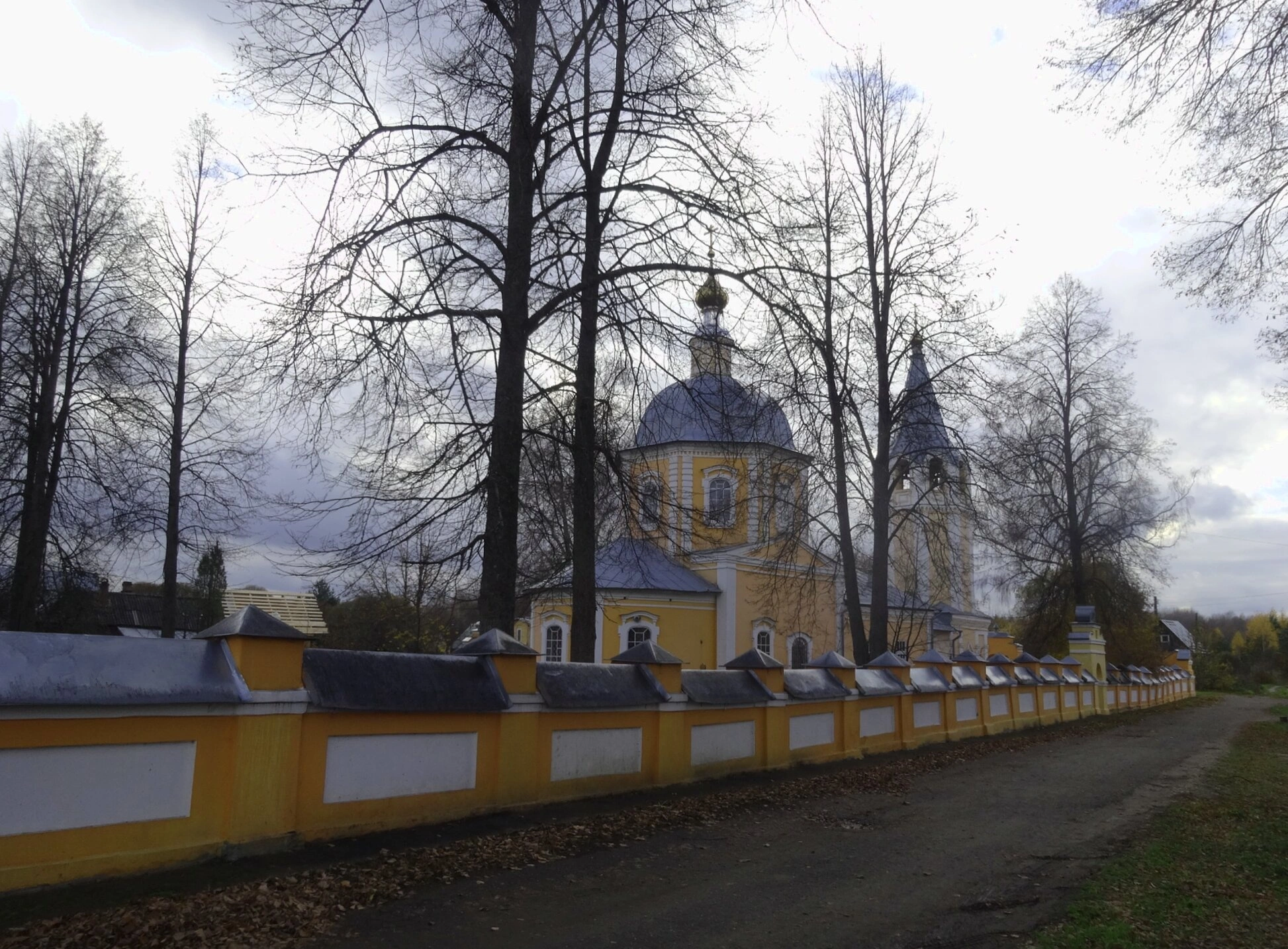 На представленной фотографии запечатлён Воскресенский мужской монастырь, известный также как Ермолинская пустынь, расположенный в селе Ермолино Фурмановского района Ивановской области. Снимок передаёт благоговейную и строгую атмосферу этого святого места, удалённого от суетного мира.