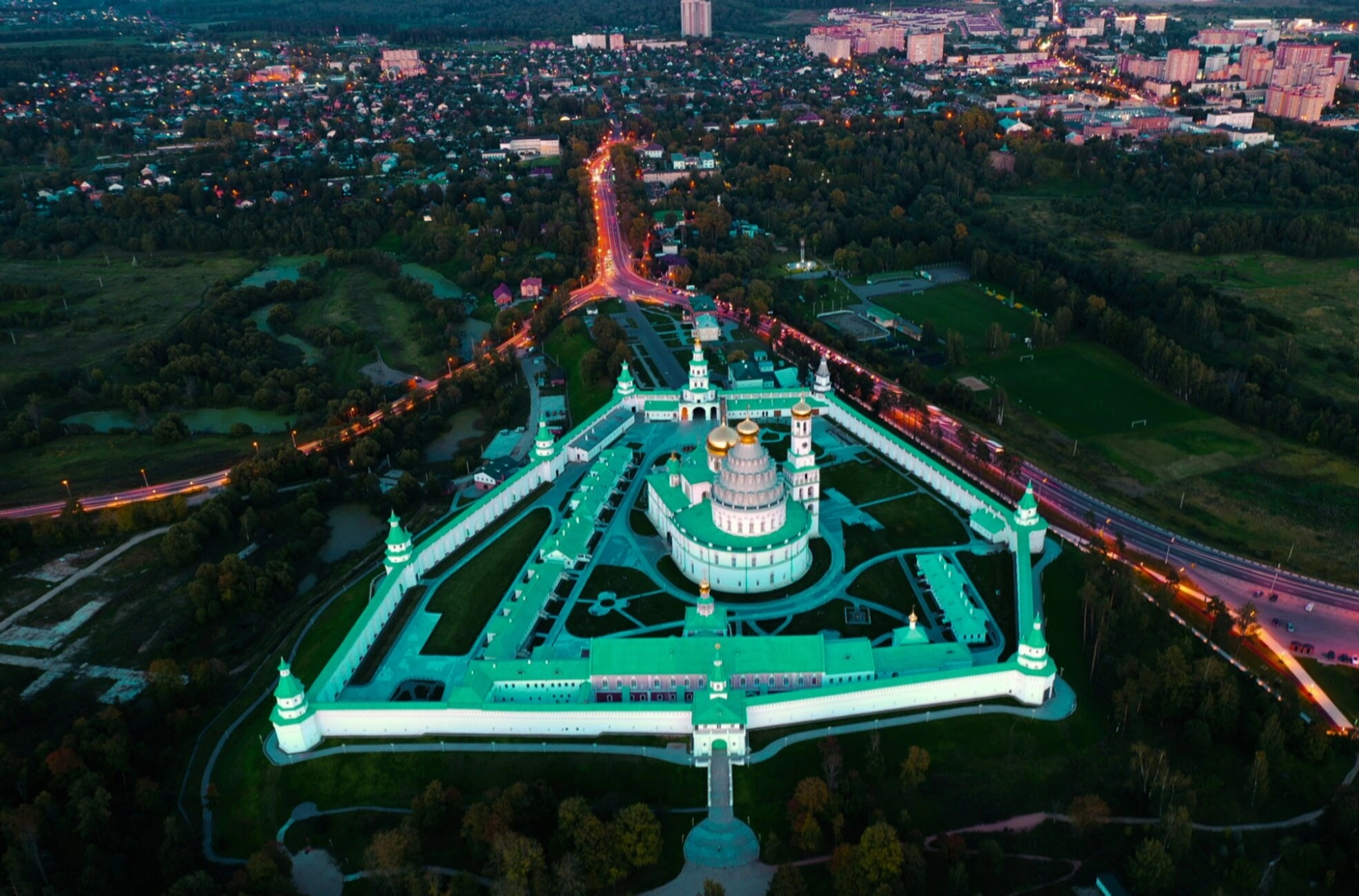 - Воскресенский Ново-Иерусалимский монастырь: вид с высоты в ночное время
