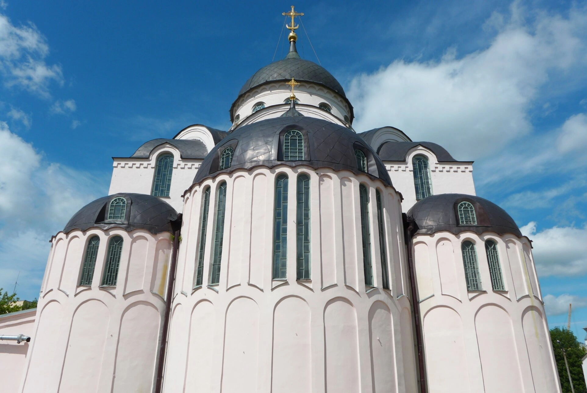 На представленной фотографии запечатлён величественный Воскресенский собор, являющийся главным храмом Христорождественского женского монастыря в городе Твери. Собор был возведён в 1913 году и представляет собой выдающийся образец церковной архитектуры начала XX века.