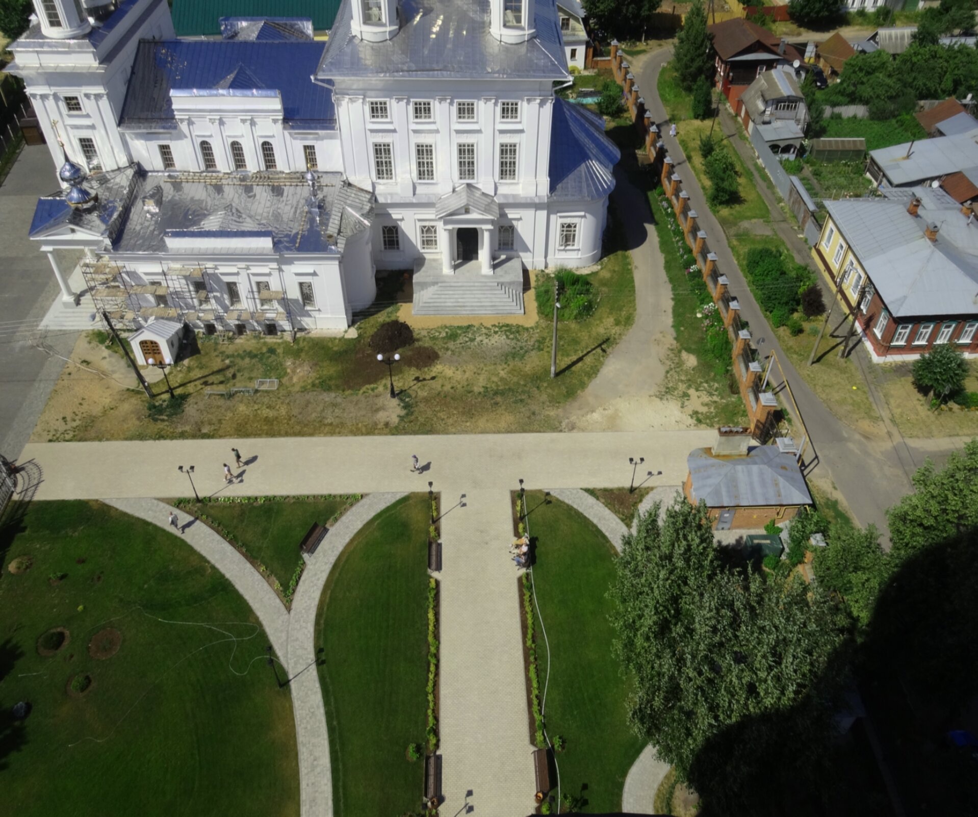 Перед храмом раскинулась ухоженная территория с извилистыми дорожками, зелёными газонами и скамейками для отдыха прихожан и паломников. Множество деревьев и кустарников подчёркивает красоту рукотворного творения, гармонично вписывая его в божий мир. Окружающая собор городская застройка состоит из исторических зданий, что сохраняет неповторимый дух старинного купеческого города.