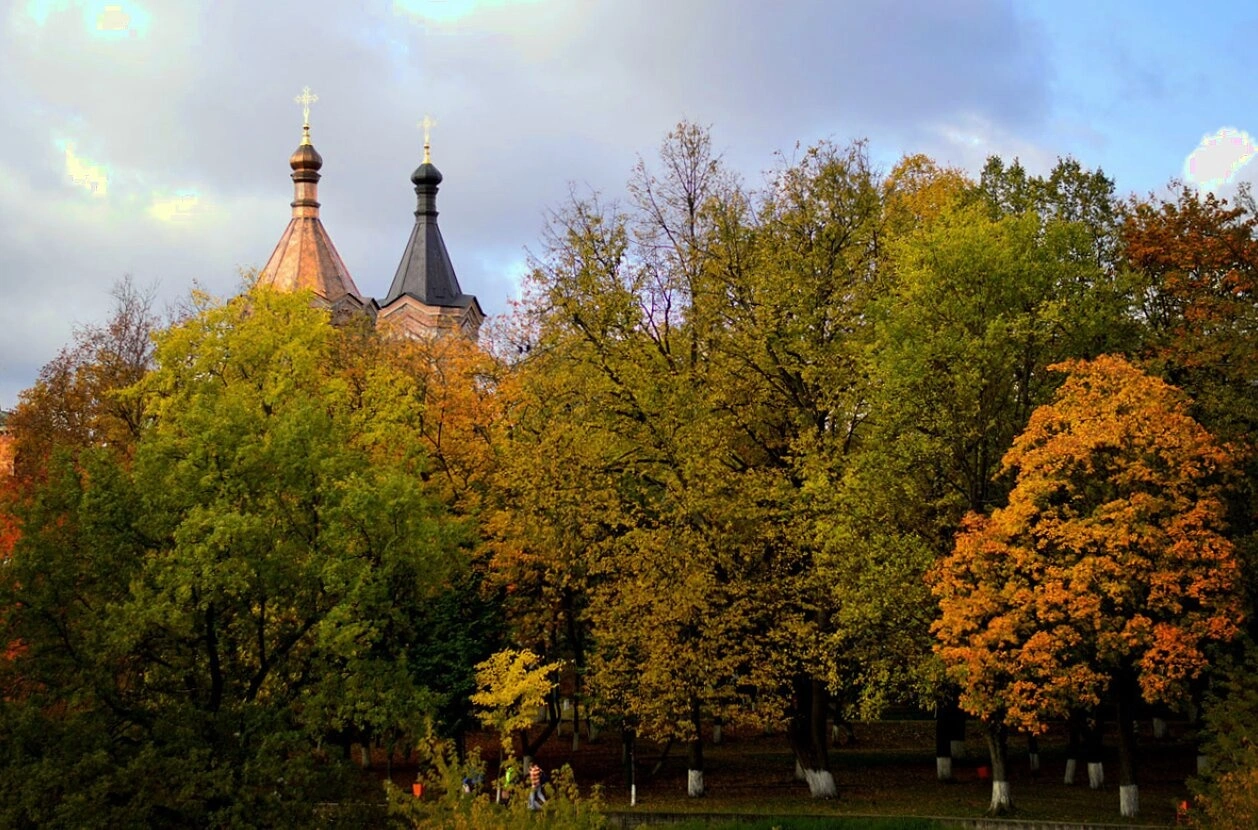 Осеннее небо с легкими облаками создаёт идеальный световой фон, мягко подсвечивая архитектурный ансамбль собора, который является духовным центром и одной из главных архитектурных доминант древнего города. Снимок передаёт умиротворённую и благостную атмосферу православной осени, напоминая о вечных ценностях и духовной красоте.