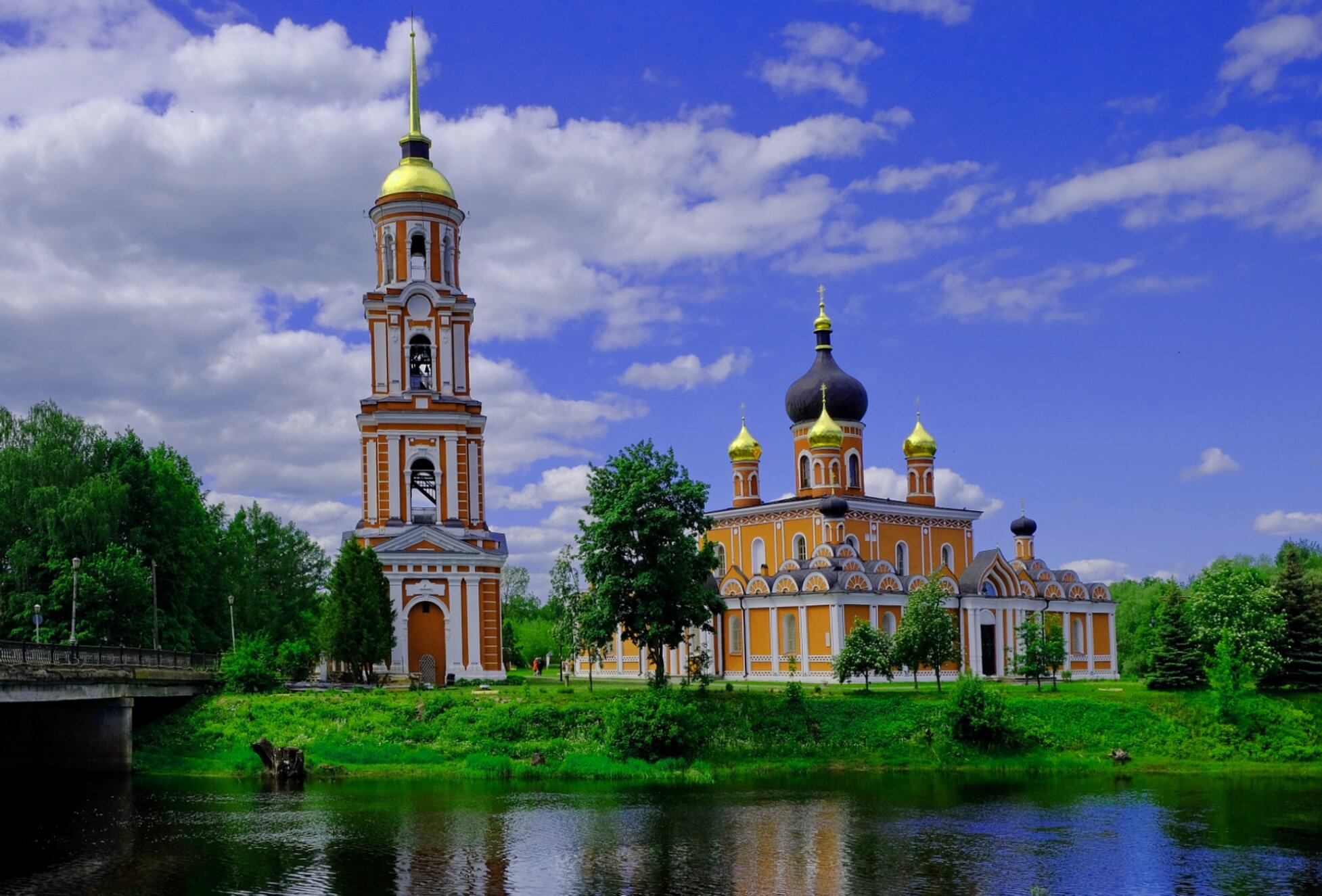 На фотографии запечатлён величественный Воскресенский собор, расположенный в древнем городе Старая Русса Новгородской области. Этот православный храм, возведённый в конце XVII века, является выдающимся памятником русской церковной архитектуры и одной из главных духовных доминант города.