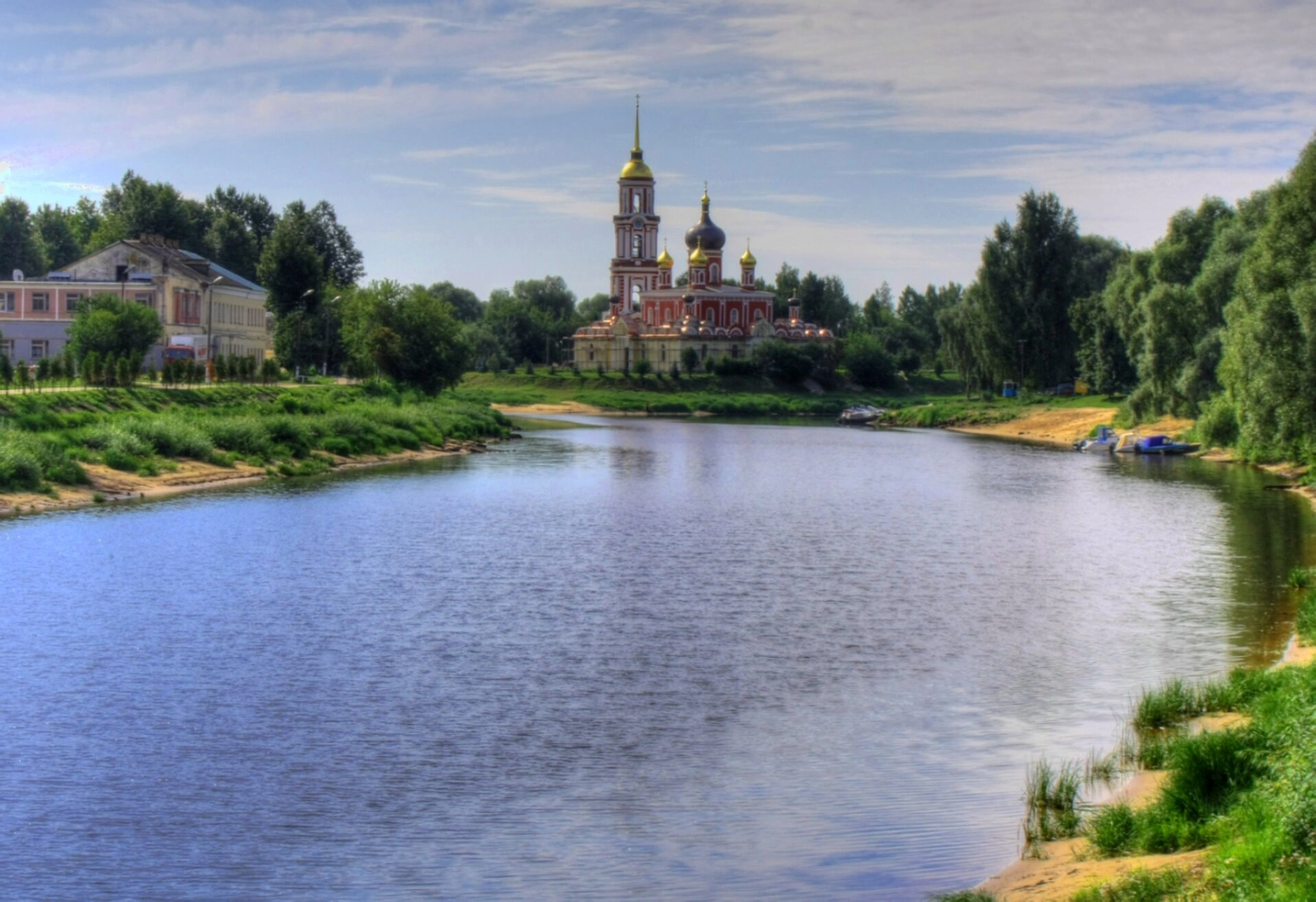 Воскресенский собор в Старой Руссе на берегу реки Полисть