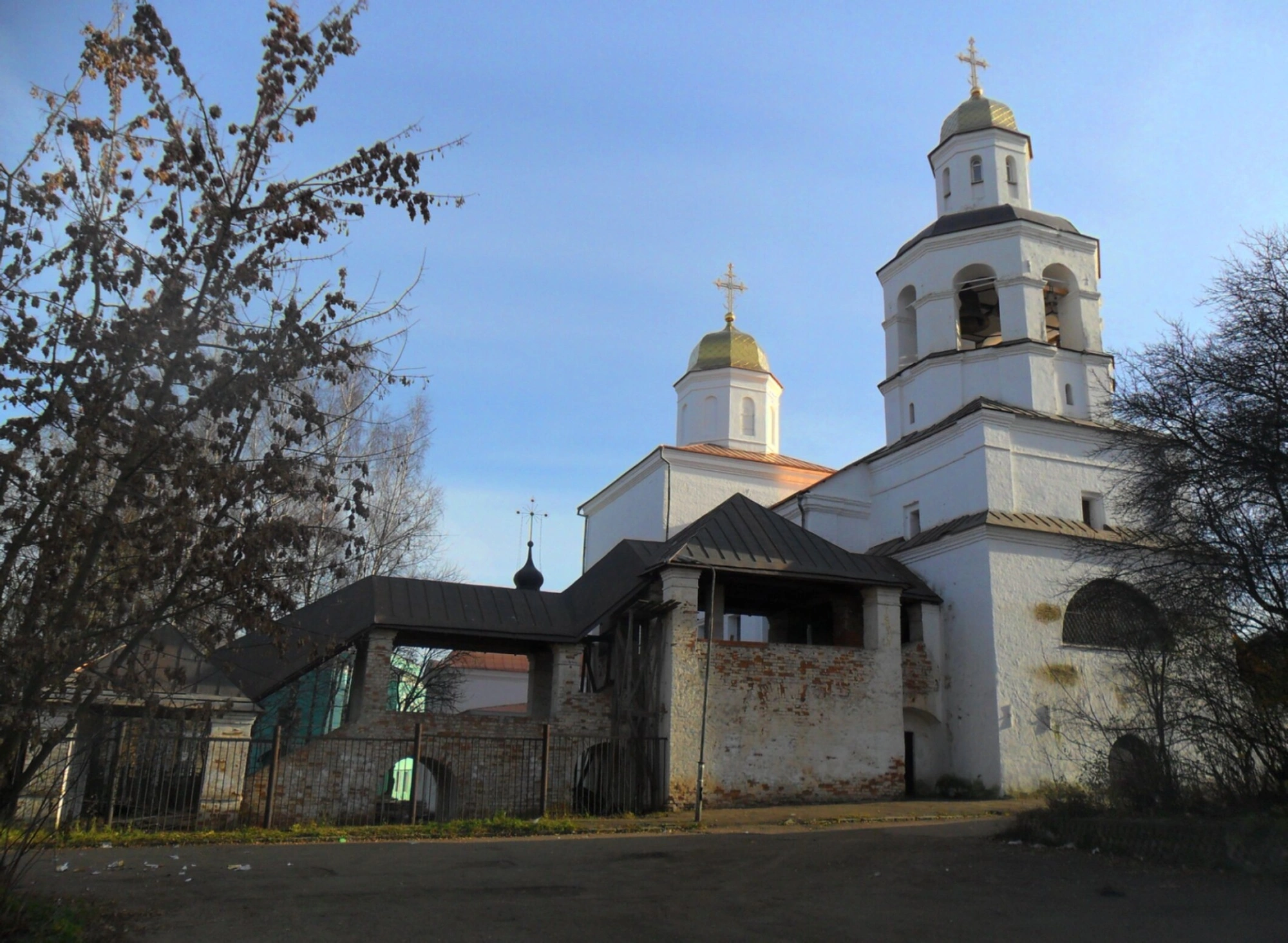На переднем плане видны деревья, лишённые листвы, что позволяет предположить, что фотография сделана в период поздней осени или ранней весны. Это придаёт изображению особое настроение смирения и тихого ожидания, созвучное монашескому духу. Обитель, пережившая вместе со Смоленском все исторические потрясения, сегодня представляет собой не только действующий женский монастырь, но и объект культурного наследия, привлекающий паломников и ценителей православной архитектуры.