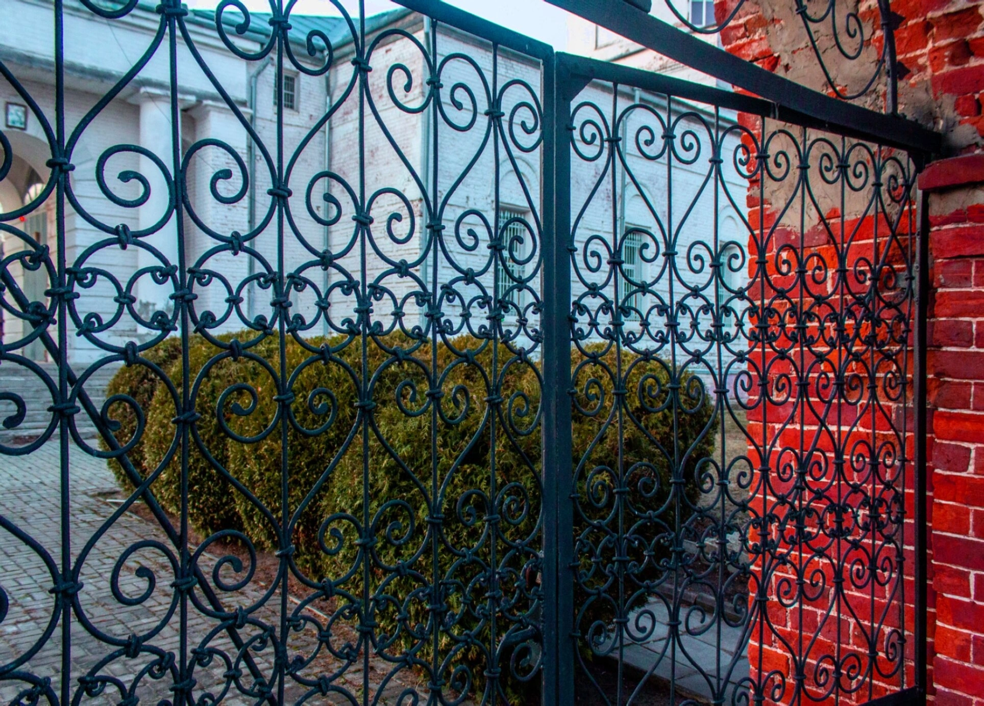 За решетчатой оградой, сквозь которую прорастает жизнь в виде аккуратно подстриженного самшита, виднеется светлый фапас святыни — Церкви Николая Чудотворца, являющейся объектом культурного наследия. Сами врата служат не только физическим, но и символическим рубежом, отделяющим мирскую суету от места благодати и молитвенного уединения. Их прочность и художественная завершенность подчеркивают особый статус храмовой территории, приглашая верующих переступить порог и оставить все заботы за спиной.